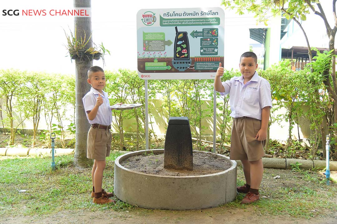 Connecting the process via households – temples – schools – the waste bank is the core of instilling knowledge, understanding, and serves as a foundation for an integrated community waste management system. Also, this promotes the “maximizing resource, separating waste, and proper disposal” practice. This is especially true among “young generations” who are growing up as the main driving force of the future. Accordingly, SCG Chemicals joins with educational networks in creating learning programs about resource appreciation and school waste management. The program has undergone tests, experiments, revisions, and is on its journey to implementation in different schools.