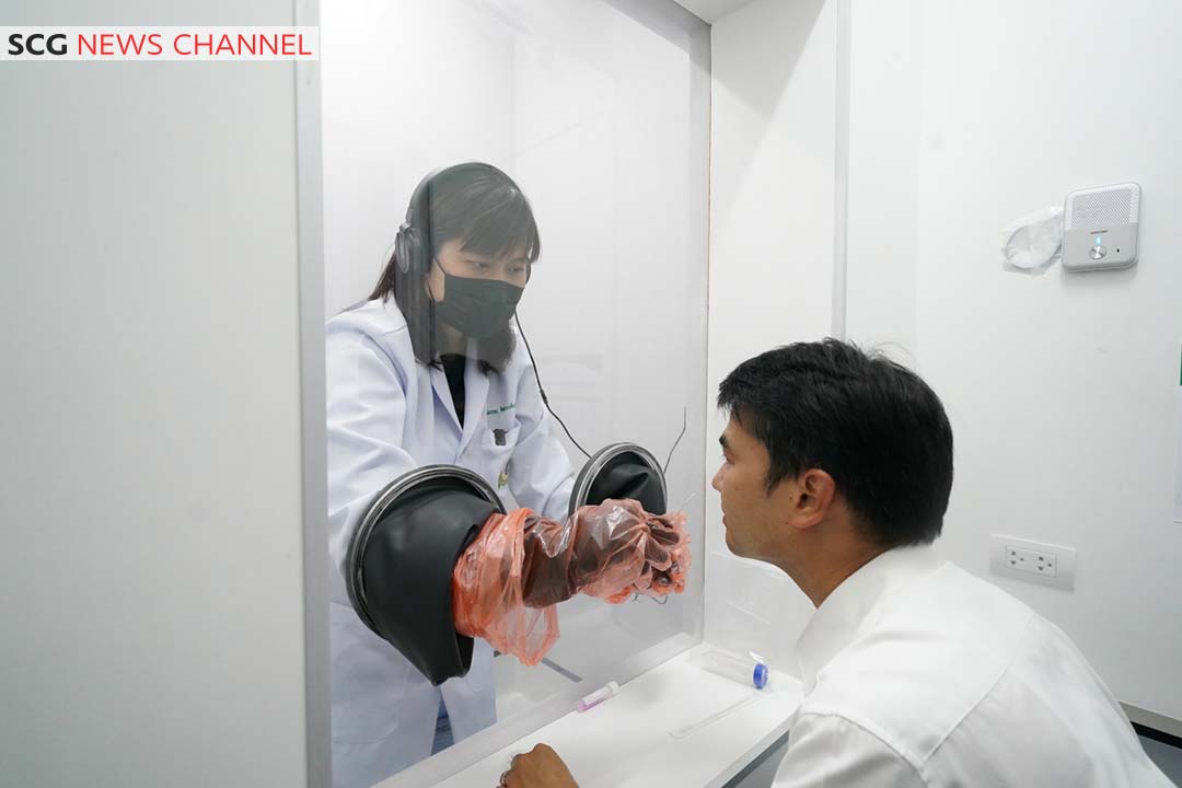 SCG Foundation has donated its second modular swab unit and tele-monitoring system which had been co-developed by SCG and worth a total of 2.5 million baht to Ramathibodi Hospital. The unit requires an installation period of only one and a half days during the hours that the hospital closes which allowed it to be ready in time for the opening hours of the hospital at the beginning of the week. The modular swab unit is compact and can fit in tight spaces, while it is able to host five medical professionals and five patients at a time and can also efficiently connect with the hospital’s existing screening system, allowing the hospital to safely and swiftly screen for patients at risk. The units offer a pressure control and air flow system that is clean, safe, and lowers the risk of infection as well as an air tightness system that prevents dust, noises, and air from flowing in and out of the building, similar to the modular swab unit that SCG has recently donated to Rajavithi Hospital. During the procedure, patients and medical professionals remain separated in order to prevent the virus from spreading, while the medical professional would insert their hands through a glove-covered slot on an acrylic sheet in order to collect the sample. Apart from using concentrated UV radiation to kill the virus (UV Germicide) on the gloves and on the surfaces of the room after each use, patients also use a disposable glove in order to lower the risk of spreading the virus to other patients and doctors. Meanwhile, all units are separated into cells that can be individually shut down in emergencies when there is a breach between the medical staff area and patient area.
