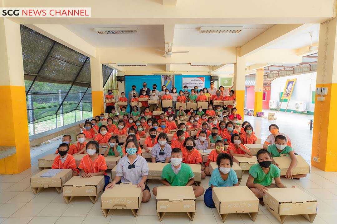 Ms.Nattaviga Sukphiromkasem, Acquisition and Engagement Division Manager, World Vision Thailand said “After we decided to procure desks for children, we thought about the desk that would be lightweight, portable, and eco-friendly. So, we contacted SCG Packaging as we hoped our desk would be made of paper. We had since worked with SCG Packaging for nearly one year to develop this 3-in-1 paper desk. Through this collaboration, we have seen clearly that SCG Packaging is truly professional.”
