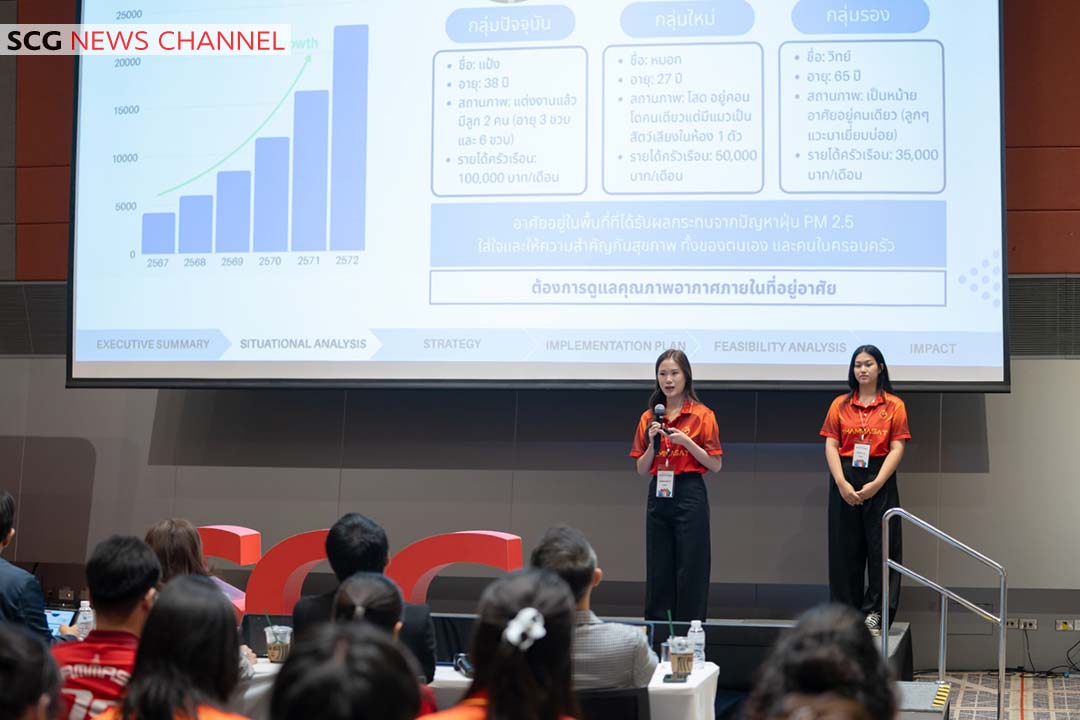 This year, students had the opportunity to solve real SCG business challenges, particularly in Smart Living and ESG (Environment, Social and Governance) areas through Learning by Doing processes. These ranged from research and concept development to prototype design and culminated in presenting their work at the Final Pitching event before SCG executives and Thammasat University faculty members.