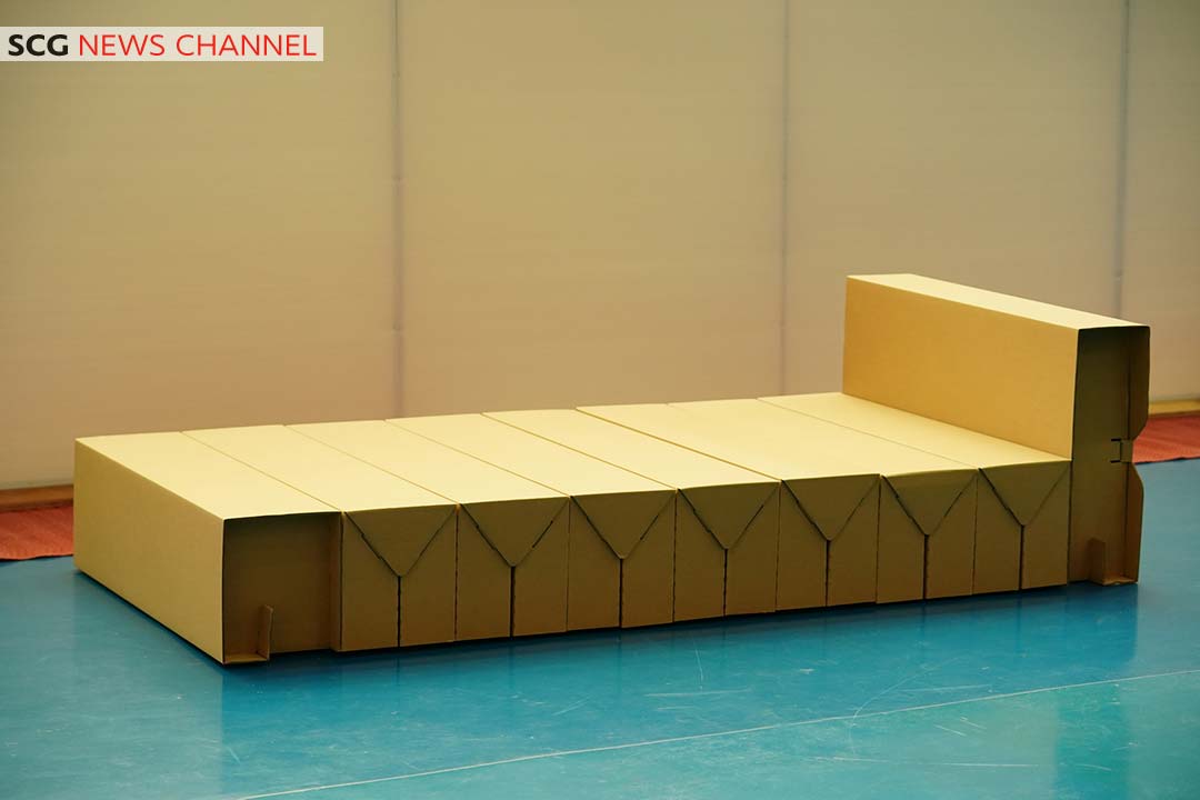 - SCGP Paper Field Hospital Bed as an optional solution for hospital bed scarcity. They are made from 100% recycled paper with an ergonomics design that supports Asian body structures. Moreover, they are light weighted, thus, are easily transported and stored. They can be installed in 8 minutes with no use of glue, can be used for 3 months when kept away from water, and supports 100 kg of weight horizontally. Also, SCG and 62 organizations join the “United to fight against COVID” project to set up collection centers for used paper boxes to be recycled to paper field beds in an attempt to turn resources into upcycled products. At present, the distribution has reached 27,600 paper beds to 340 locations.