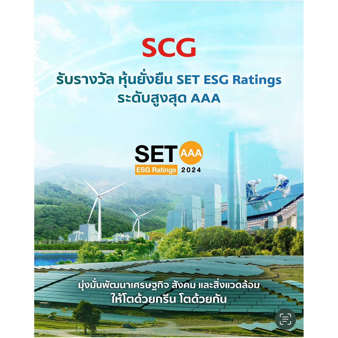 SCG has been selected for the highest level “SET ESG Ratings” at AAA level for 2024 by the Stock Exchange of Thailand. This reflects their business operations’ consideration of responsibilities toward all stakeholders while participating in environmental and social responsibilities through good corporate governance (Environmental, Social, and Governance: ESG). This aligns with sustainable investment trends through green innovations, ready to drive economic, social, and environmental growth together.