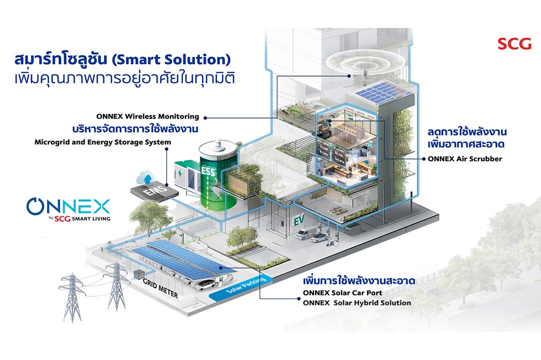 SCG is advancing its smart solutions under the ‘New S-Curve’ initiative through the ‘ONNEX’ brand, combining SCG’s expertise with cutting-edge technology to enhance all aspects of living. This includes energy-saving systems like the ‘Air Scrubber’ for air purification and ‘Solar Hybrid Solutions’ for clean energy. The ‘Bi-on’ system monitors air quality in homes and buildings. In the future, SCG will introduce solutions tailored to elderly care, addressing the aging population trend. The company is also preparing to integrate all ONNEX solutions into a single platform, managed through the digital operating system ‘Trinity,’ to provide greater convenience for users.