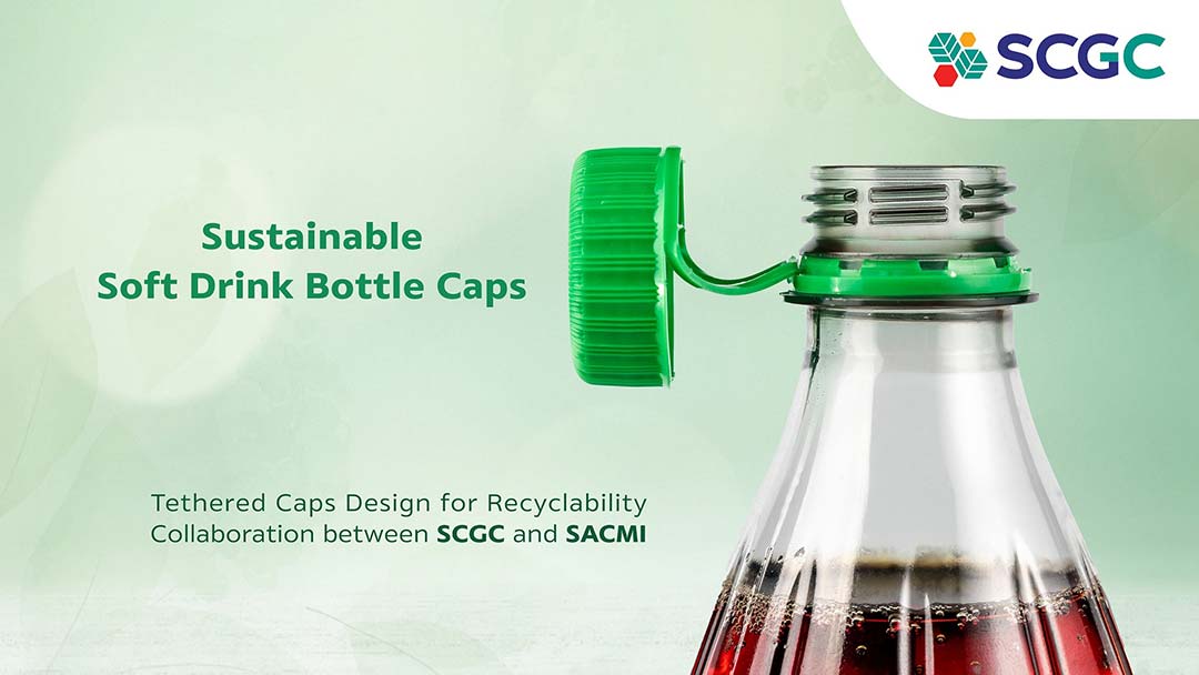 In partnership with SACMI to develop a new carbonated soft drink bottle cap design that complies with sustainability requirements, SCGC has introduced green polymer under the brand name SCGC GREEN POLYMER, which are excellently robust and durable throughout production, allowing the bottle cap body and ring as tamper evident band to be attached. Both the bottle cap body and the tamper evident band is firmly attached to the bottle when opened for use, and it does not fall out of the bottle as easily as before, minimizing plastic leakage into the environment. In addition, the entire bottle cap is recyclable, allowing for more efficient recycling of used plastic. Globally, over 130 billion plastic bottle caps are used each year. If it is completely redesigned, it will be easier to collect and store after use, which helps to build a better and more sustainable environment in line with the principles of the circular economy.”