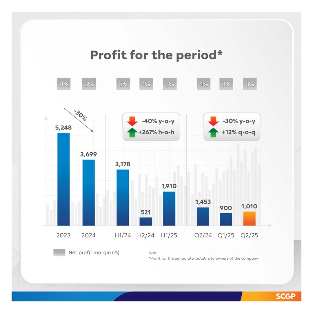 In addition, the company has evolved its ESG and Circular Economy principle in line with international sustainability guidelines. The company was awarded the Platinum Medal from EcoVadis for the second consecutive year. Furthermore, SCGP has developed over 169 products and 16 processes that have received certification for the Carbon Footprint of Products, representing 50% of its target to have all products certified by Q4/2025.