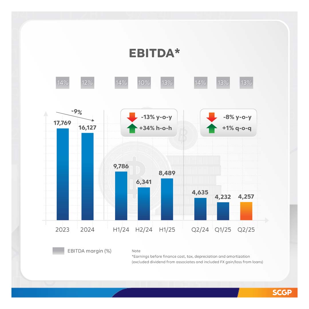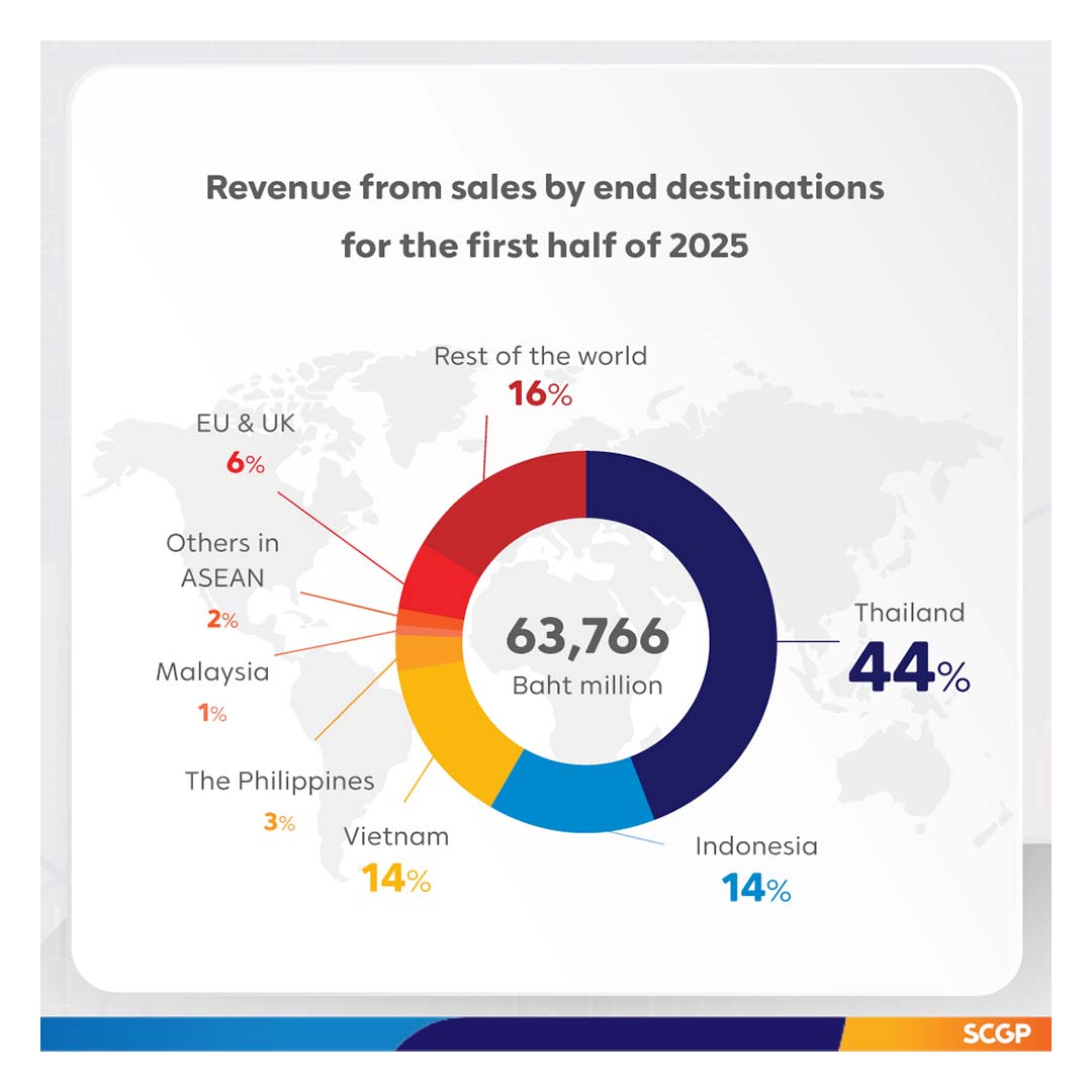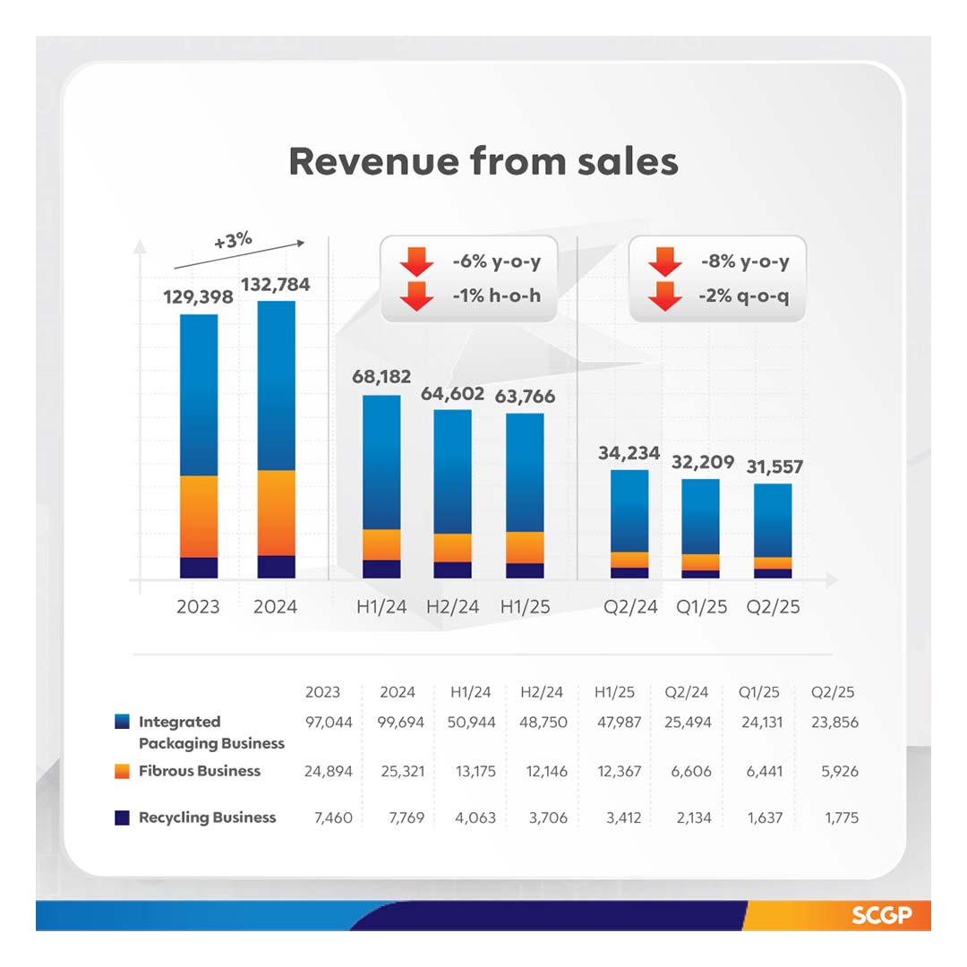 SCGP has implemented a strategy for continuous growth in ASEAN, focusing on proactive marketing through packaging solutions that serve consumer needs. This approach has resulted in a steady increase in sales volume for the integrated packaging business, particularly in Vietnam, even as most prices remained stable. In the pulp and paper business, sales volume decreased due to a slowdown in demand from the textile and garment industries. Concurrently, the company has focused on cost-efficient and sustainable operations by leveraging AI and machine learning across the entire value chain. This was particularly evident in the Indonesian operations, where AI has started putting into practice for energy optimization, increase the utilization of domestic recovered paper (RCP), and manage financial costs effectively. These initiatives enabled the Indonesian operations’ EBITDA to reach the break-even point, positively impacting the company’s overall performance. As a result, in the second quarter of 2025, SCGP reported revenue from sales of Baht 31,557 million, a decrease of 2%; EBITDA of Baht 4,257 million, an increase of 1%; and profit for the period of Baht 1,010 million, an increase of 12%, compared to the first quarter of 2025.