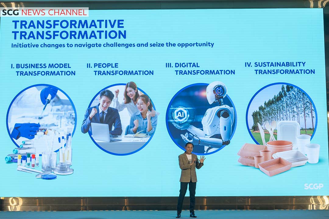 “Wichan Jitpukdee,” Chief Executive Officer of SCG Packaging Public Company Limited or SCGP, highlighted that the world is changing rapidly, and businesses that do not adapt will not be able to compete. SCGP has continuously adapted, with sustainability being ingrained in SCG’s DNA. SCGP aims to reduce greenhouse gas emissions by 25% by 2030 and achieve Net Zero by 2050. This will be accomplished through two main strategies: the assessment of the Carbon Footprint for Organization (CFO) and transition to low carbon dioxide-emitting fuels. These include installing solar roofs, using biomass energy instead of coal, and incorporating artificial intelligence to enhance efficiency and reduce energy consumption, cutting down greenhouse gas emissions by one million tons. SCGP aims to plant 2.3 million trees, recycle plastic waste into new plastic pellets, and repurpose 24,000 tons of paper pulp waste annually to produce soil conditioners, which are then used to grow eucalyptus trees for paper production.
