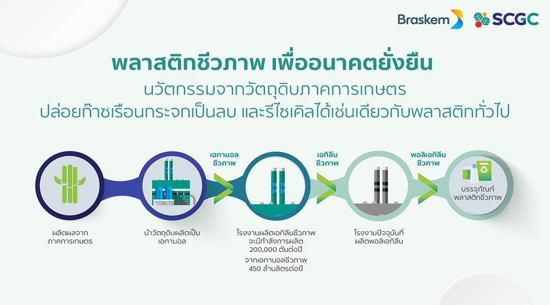 ด้วยวิสัยทัศน์ที่กว้างไกลและเน้นให้ความสำคัญ กับผู้คนและการสร้างความยั่งยืน บราส เคม สยาม มุ่งมั่นในการยกระดับ และสร้างสรรค์เม็ดพลาสติกชีวภาพ การร่วมทุนระหว่าง บราสเคม และเอสซีจี เคมิคอลส์ หรือ SCGC เป็นการผสมผสานความเชี่ยวชาญ ด้านเทคโนโลยีระดับโลก เข้ากับความเชี่ยวชาญ เพื่อผลิตเม็ดพลาสติกชีวภาพภายใต้แบรนด์ Im green™ ซึ่งผลิตจากเอทานอลที่ใช้ผลิตผลจากภาคเกษตร นับเป็นโซลูชันที่ช่วยลดการปล่อยก๊าซคาร์บอนไดออกไซด์ และยังรีไซเคิลได้เช่นเดียว กับพลาสติกทั่วไป สามารถนำไปผลิตสินค้า ได้หลากหลายประเภท เช่น บรรจุภัณฑ์อาหารและเครื่องดื่ม เครื่องใช้ส่วนบุคคล ของเล่น และอีกมากมาย โดยโรงงานจะตั้งอยู่ในนิคมอุตสาหกรรมมาบตาพุด จังหวัดระยอง ประเทศไทย บราสเคม สยาม มีแผนในการเพิ่มกำลังการผลิตเม็ดพลาสติกชีวภาพของโลกเป็นสองเท่า เพื่อตอบรับความต้องการพลาสติก ที่เป็นมิตรกับสิ่งแวดล้อมที่เติบโต อย่างต่อเนื่องในเอเชียและทั่วโลก