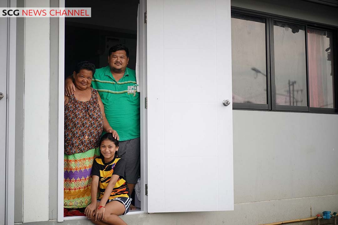 “ขอบคุณท่านนายกรัฐมนตรี เอสซีจี ภาครัฐและเอกชน ที่ช่วยมอบชีวิตใหม่ ให้โอกาสพวกเรามีส่วนร่วมออกแบบบ้านของตนเอง และยังมีบ้านส่วนกลางให้คนสูงอายุที่ไร้อาชีพ อีกทั้งยังสนับสนุนให้เราออมเงินสร้างบ้าน โดยเราจะดูแลบึงน้ำให้สะอาด ในอนาคตอยากพัฒนาพื้นที่ให้เป็นสวนเกษตรอินทรีย์กลางกรุง เพื่อต่อยอดอาชีพสร้างรายได้ให้กับพวกเรา”