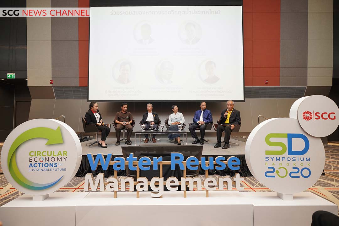 ภาครัฐ ภาคเอกชน นักวิชาการ ชุมชน และเยาวชนคนรุ่นใหม่ จึงได้ร่วมกันระดมความคิดเห็น ในงาน SD Symposium 2020 “Circular Economy: Actions for Sustainable Future” ที่จัดขึ้นโดย เอสซีจี เพื่อหาทางออกแก้ปัญหาสิ่งแวดล้อม รวมถึงปัญหาวิกฤตน้ำประเทศไทย ด้วยหลักเศรษฐกิจหมุนเวียน (Circular Economy) พร้อมเสนอทางรอดและข้อสรุป ตลอดจนแนวทางให้เกิดการขยายผลนำไปปฏิบัติจริง โดยเชื่อว่า การบริหารจัดการน้ำด้วย “ระบบน้ำหมุนเวียน” จะช่วยแก้ปัญหาวิกฤตน้ำได้อย่างยั่งยืน