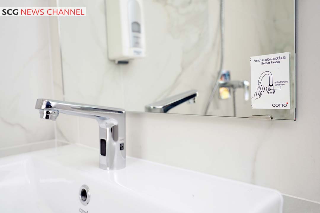 • ลดการสัมผัสปนเปื้อน ด้วยการติดตั้งก๊อกน้ำและเครื่องกดสบู่อัตโนมัติ รวมถึงสุขภัณฑ์ COTTO รุ่นที่รองรับการเติมน้ำในการกดชำระและการใช้งานหนัก