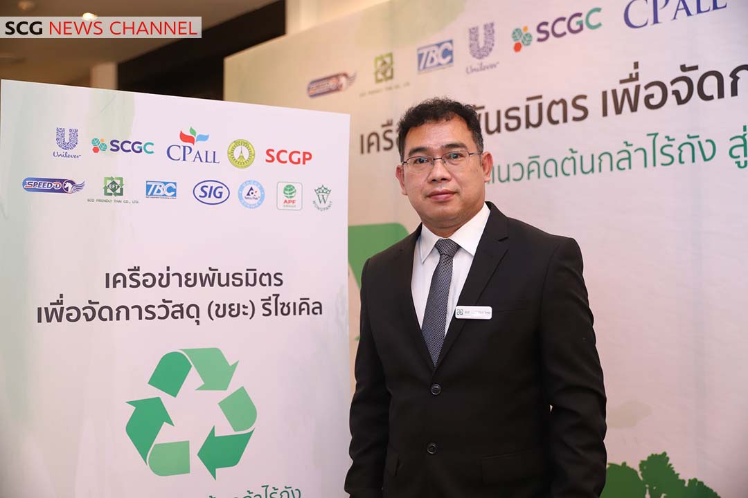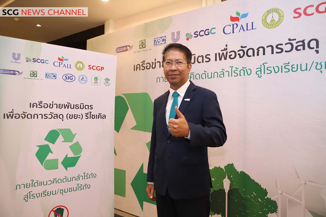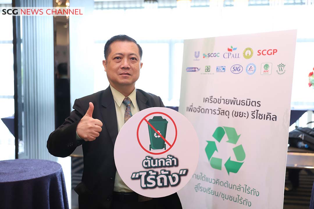 นายนิวัฒน์ อธิวัฒนานนท์ ประธานคณะกรรมการ Innovation & Circular Economy บริษัท เอสซีจี เคมิคอลส์ จำกัด (มหาชน) หรือ SCGC กล่าวว่า SCGC ให้ความสำคัญกับเรื่อง Circular Economy มาอย่างต่อเนื่อง โดยร่วมมือกับทุกภาคส่วนเพื่อนำหลักเศรษฐกิจหมุนเวียน มาประยุกต์ใช้ใน eco system ต่าง ๆ ซึ่งจะช่วยให้การใช้ทรัพยากรเกิดประโยชน์สูงสุด ลดปัญหาขยะและช่วยลดภาวะโลกร้อน สำหรับภาคีเครือข่ายต้นกล้าไร้ถัง ถือเป็นการสร้างระบบนิเวศการจัดการขยะที่สอดคล้องกับหลักเศรษฐกิจหมุนเวียน (Circular Economy) โดย SCGC จะเข้ามาช่วยดำเนินการใน 2 ส่วน ได้แก่ 1.เว็บแอปพลิเคชัน “คุ้มค่า” (KoomKah) เพื่อให้ทุกโรงเรียนสามารถเห็นผลลัพธ์การจัดการของตัวเอง พร้อมทั้งสะสมคะแนน แปลงขยะกลับมาเป็นเงินหรือผลิตภัณฑ์รีไซเคิลผ่านการแลกคะแนนได้ กระตุ้นให้โรงเรียนมีส่วนร่วม จัดการขยะผ่านประโยชน์ที่ได้รับ 2.โครงการถุงนมกู้โลก ที่ผ่านมาถุงนมโรงเรียน เป็นขยะที่ไม่มีผู้รับซื้อจึงถูกกำจัดด้วยการฝังกลบ ทาง SCGC ได้ให้ความรู้เรื่องการจัดการขยะแก่เยาวชน พร้อมร่วมแก้ปัญหาการจัดการขยะกับทางโรงเรียนนำร่องที่ จ.ระยอง โดยใช้ความเชี่ยวชาญด้านวัสดุและกระบวนการรีไซเคิล เปลี่ยนถุงนมให้เป็นเม็ดพลาสติกที่มีคุณภาพ นำไปใช้ผลิตเป็นของใช้ต่าง ๆ ได้อีกครั้ง เช่น เก้าอี้พลาสติกรีไซเคิล กระถางต้นไม้ ให้โรงเรียนได้นำไปใช้ประโยชน์ และเยาวชนได้เห็นตัวอย่างที่เป็นรูปธรรม พร้อมขยายผลกับเครือข่ายความร่วมมือด้านเศรษฐกิจหมุนเวียนต่อไป