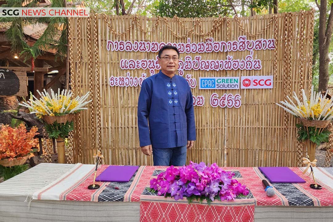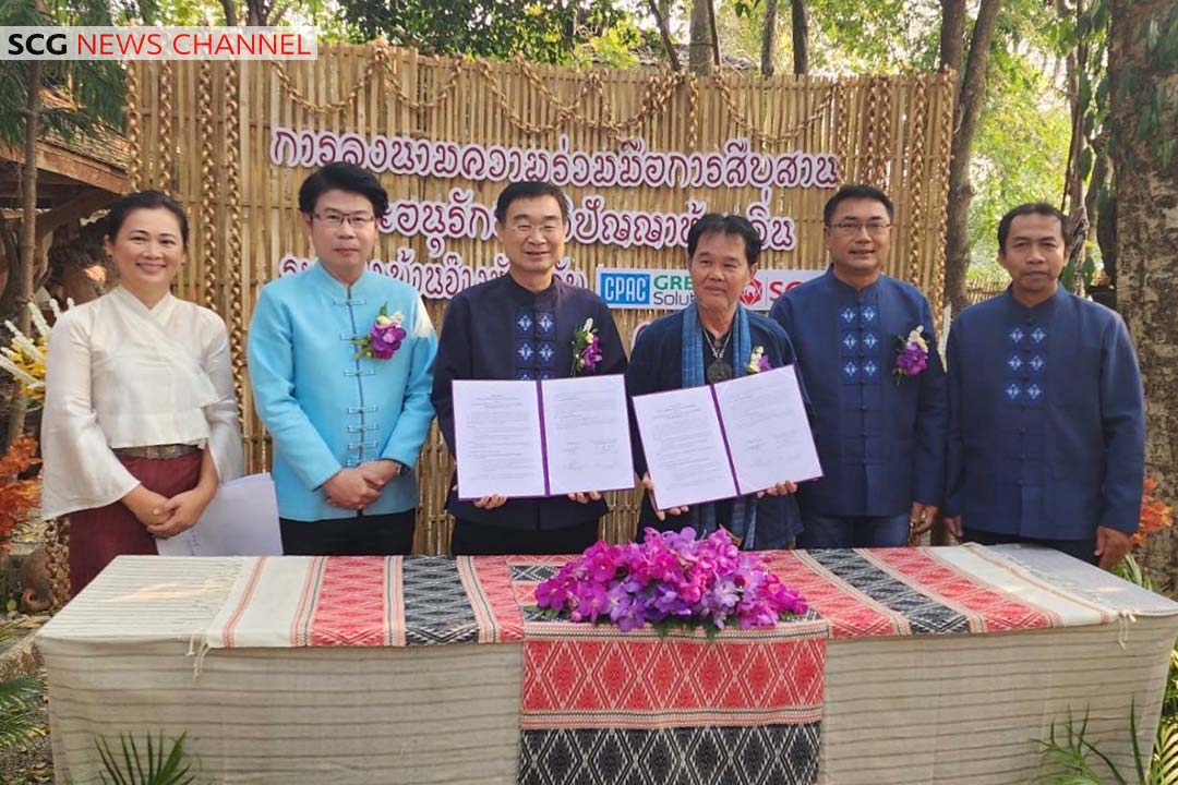 นายชนะ ภูมี ผู้ช่วยผู้จัดการใหญ่-การบริหารความยั่งยืน เอสซีจี พร้อมด้วย นายภิญโญ พัวศรีพันธ์ นายอำเภอสันกำแพง ร่วมเป็นสักขีพยานในพิธีลงนามความร่วมมือ “การสืบสานและอนุรักษ์ภูมิปัญญาท้องถิ่น” ปั้นช้างจากผ้าใบคอนกรีตรักษ์โลก สร้างเป็นแลนด์มาร์คแห่งใหม่ของจังหวัดเชียงใหม่ ระหว่างบริษัท ผลิตภัณฑ์และวัตถุก่อสร้าง จำกัด ( CPAC) โดยนายดุสิต ศุทธกิจ Head of Urbanized Solution Business กับ สล่าเพชร วิริยะ ผู้ก่อตั้งพิพิธภัณฑ์บ้านจ๊างนัก โดยนำนวัตกรรมผ้าใบคอนกรีตที่ผลิตจากซีเมนต์ และใยสังเคราะห์ มีความแข็งแรงคงทนทึบน้ำ สามารถจัดรูปทรงได้ตามที่ต้องการ และเหมาะกับงานสร้างสรรค์รูปทรงเฉพาะ เช่น เฟอร์นิเจอร์ หรือของตกแต่ง นอกจากนี้ ยังได้นำปูนเสือ ซีเมนต์ ซุปเปอร์ ก่อ ฉาบ เท ที่มีคุณสมบัติในการลดการปล่อยก๊าซเรือนกระจกจากกระบวนการผลิต อย่างน้อย 20 กิโลกรัมต่อตันปูนซีเมนต์ หรืออย่างน้อย 1 กิโลกรัมต่อปูนซีเมนต์ 1 ถุง และเป็นผลิตภัณฑ์ที่ได้รับการรับรองฉลาก SCG Green Choice มาใช้ในการปั้นช้าง โดยผสมผสานระหว่างงานศิลปะท้องถิ่นของบ้านจ๊างนักกับนวัตกรรมและเทคโนโลยีการก่อสร้างที่เป็นมิตรต่อสิ่งแวดล้อม ของ CPAC Green Solution เพื่อเป็นชิ้นงานตัวอย่างและนำไปแสดงในจุดแลนด์มาร์คใหม่ที่ประตูท่าแพ จังหวัดเชียงใหม่