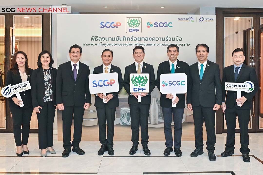พิธีลงนาม MoU มีนายประสิทธิ์ บุญดวงประเสริฐ ประธานคณะผู้บริหาร ซีพีเอฟ ลงนามร่วมกับ นายวิชาญ จิตร์ภักดี ประธานเจ้าหน้าที่บริหาร SCGP และนายสุรชา อุดมศักดิ์ ประธานเจ้าหน้าที่สายงานนวัตกรรม และรองกรรมการผู้จัดการใหญ่ SCGC พร้อมด้วยนางกอบบุญ ศรีชัย ผู้บริหารสูงสุดสายงานกิจการองค์กรและลงทุนสัมพันธ์ นางสาวธิดารัตน์ เดชายนต์บัญชา ผู้บริหารสูงสุดสายงานจัดซื้อกลาง และนายกิตติ หวังวิวัฒน์ศิลป์ ผู้อำนวยการ สายงานวิจัยและพัฒนาบรรจุภัณฑ์ ซีพีเอฟ ร่วมในพิธี ณ ห้องบอร์ดรูม ชั้น 30 อาคาร ซี.พี.ทาวเวอร์ สีลม