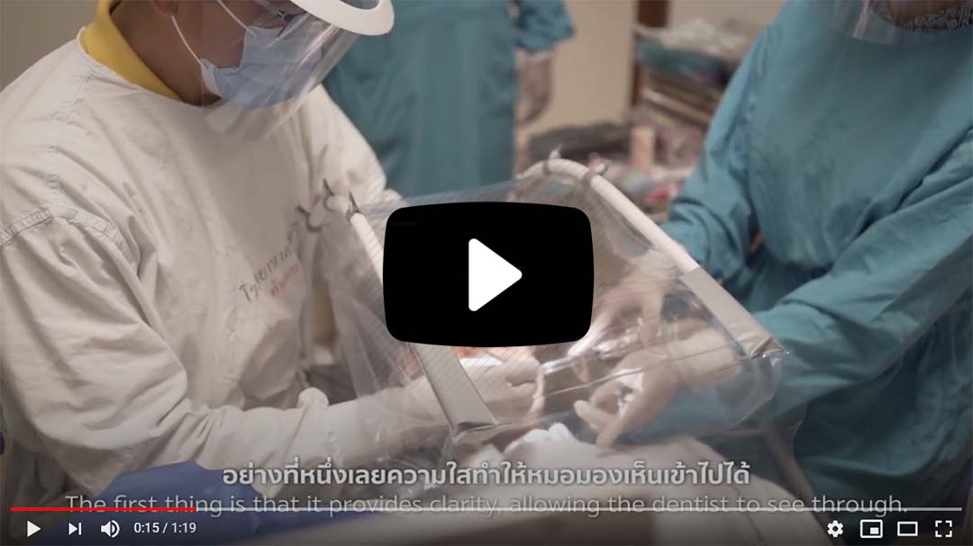 - เป็นอุปกรณ์เสริมพิเศษสำหรับงานทันตกรรม ออกแบบมาเพื่อลดการสัมผัสละอองน้ำที่ฟุ้งกระจายในขณะปฏิบัติงาน ช่วยลดโอกาสการติดเชื้อจากผู้ป่วย