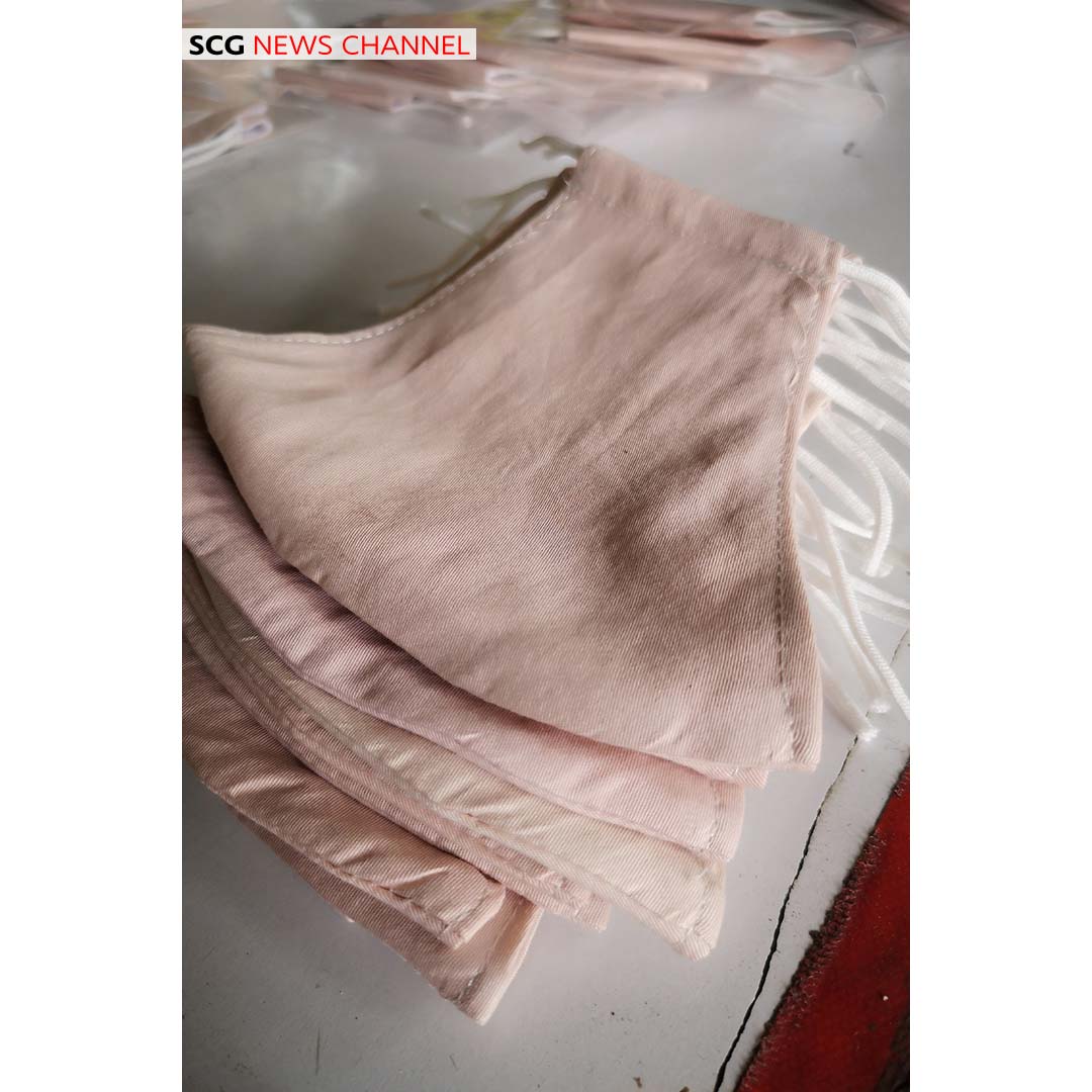 “พี่และสมาชิกฯ อยากมีส่วนช่วยเหลือในวิกฤตนี้ วิสาหกิจชุมชนแตนบาติกมีความสามารถในการตัดเย็บผ้าอยู่แล้ว จึงได้อาสามาเย็บหน้ากากผ้าโดยมีไอเดียนำเปลือกและใบมังคุดซึ่งเป็นผลไม้ท้องถิ่นจ.ระยอง มาย้อมผ้า ซึ่งสีที่ได้จะเป็นสีน้ำตาลอ่อน ปลอดภัยกับผู้สวมใส่ ซึ่งเราได้รับการสนับสนุนเรื่องการสกัดผงสีจากเปลือกและใบมังคุดจากเอสซีจี และสถาบันวิจัยวิทยาศาสตร์และเทคโนโลยีแห่งประเทศไทย โดยหลังจากที่ทำหน้ากากผ้าเสร็จแล้ว เราจะนำไปซักทำความสะอาด ฆ่าเชื้อก่อนบรรจุใส่ซอง เพื่อให้มั่นใจถึงความสะอาดและปลอดภัยสำหรับเด็ก ๆ และคนในชุมชนที่ได้รับหน้ากากผ้าฝ้ายมัสลินย้อมสีเปลือกมังคุดของแตนบาติก” นางไพลิน โด่งดัง ประธานวิสาหกิจชุมชนแตน บาติก จ.ระยอง