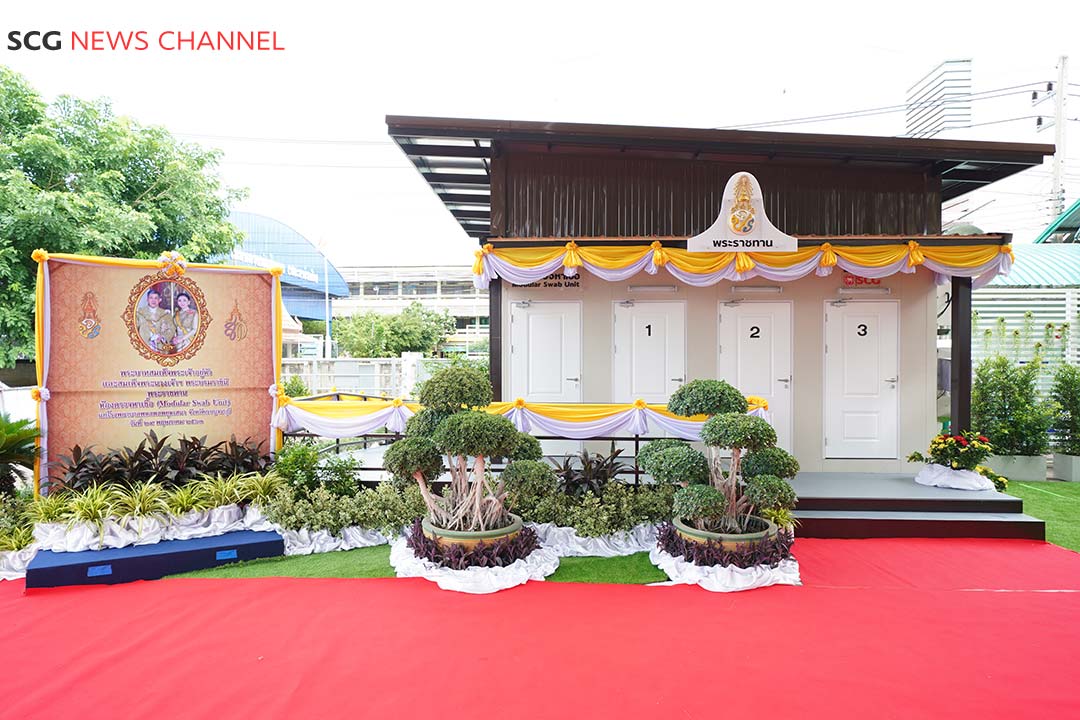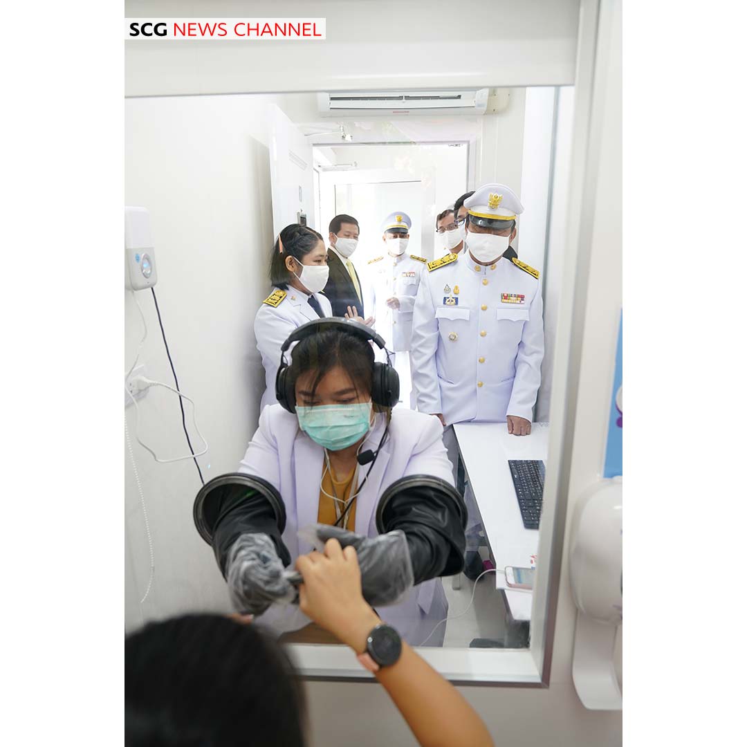 ขณะที่นายประกอบ พิกุลกานตเลิศ กรรมการผู้จัดการ บริษัทไทยเคนเปเปอร์ จำกัด (มหาชน) ในเอสซีจี แพคเกจจิ้ง กล่าวว่า “เอสซีจี รู้สึกปลาบปลื้มเป็นอย่างยิ่งที่ได้รับพระมหากรุณาธิคุณให้มีส่วนร่วมในการผลิตนวัตกรรมห้องตรวจหาเชื้อ (Modular Swab Unit) เพื่อช่วยปกป้องแพทย์ พยาบาล และบุคลากรทางการแพทย์ ขณะปฏิบัติหน้าที่ อันเป็นการตอบแทนความเสียสละและอุทิศตนของท่านทั้งหลายที่ได้ช่วยกันดูแลรักษาผู้ป่วย และยังช่วยปกป้องประชาชนจากการแพร่ระบาดของเชื้อไวรัสนี้ โดยห้องตรวจหาเชื้อดังกล่าวพัฒนาจากเทคโนโลยีของ SCG HEIM และ Living Solution ซึ่งได้ออกแบบให้มีระบบที่จะช่วยควบคุมแรงดันและการหมุนเวียนของอากาศให้สะอาด ปลอดภัย มีระบบการป้องกันอากาศรั่วไหล ที่ทำให้ห้องปิดสนิท ป้องกันอากาศเข้า-ออกตัวอาคาร ทำให้ภายในอาคารสามารถควบคุมแรงดันอากาศได้เป็นอย่างดี ช่วยเพิ่มความมั่นใจในความปลอดภัยแก่บุคลากรทางการแพทย์ ขณะปฏิบัติหน้าที่ได้มากขึ้น สำหรับห้องตรวจหาเชื้อที่โรงพยาบาลพหลพลพยุหเสนา ได้ติดตั้งในบริเวณหน้าอาคารผู้ป่วยนอก 2 เพื่อให้ขั้นตอนการตรวจคัดกรองผู้ป่วยและการตรวจหาเชื้อดำเนินไปอย่างราบรื่น แม้ว่าพื้นที่ติดตั้งจะมีข้อจำกัด เนื่องจากเป็นพื้นที่แคบ แต่ด้วยความร่วมมืออย่างดียิ่งของทางโรงพยาบาล ประกอบกับประสบการณ์และความชำนาญของทีมติดตั้ง จึงทำให้การดำเนินการต่าง ๆ สำเร็จลงภายในเวลาเพียง 3 วัน พร้อมที่จะให้บริการแก่บุคลากรทางการแพทย์และประชาชนได้ในทันที”