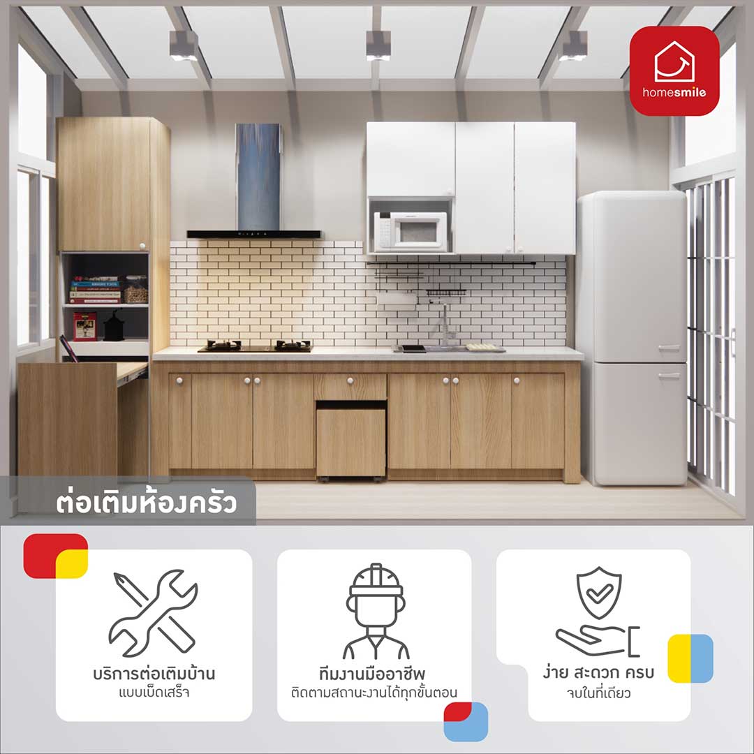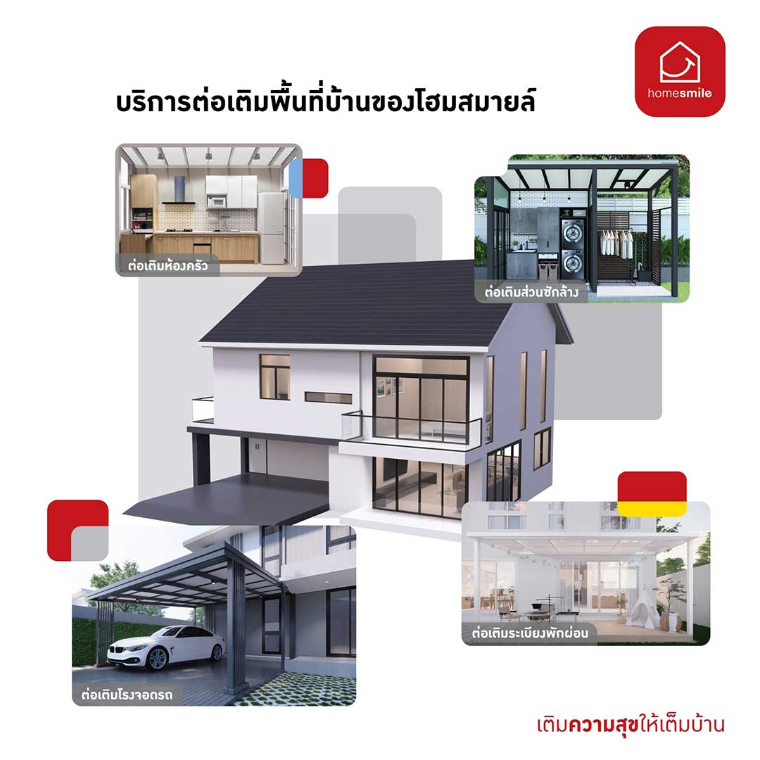 สนใจบริการต่อเติมบ้านแบบเบ็ดเสร็จ สามารถติดต่อสอบถามเพิ่มเติมได้ที่ Line Official : homesmile หรือดูข้อมูลเพิ่มเติมได้ที่ www.homesmile.co.th ติดต่อรับคำปรึกษาได้ที่ SCG Home Experience เลียบทางด่วนรามอินทรา หรือ SCG Home จังหวัดสงขลา อุบลราชธานี นครสวรรค์ และชลบุรี และพบกับบูท HomeSmile ได้ที่งานบ้านและสวนแฟร์ ระหว่างวันที่ 28 ตุลาคม – 6 พฤศจิกายนนี้ที่ อิมแพค เมืองทองธานี