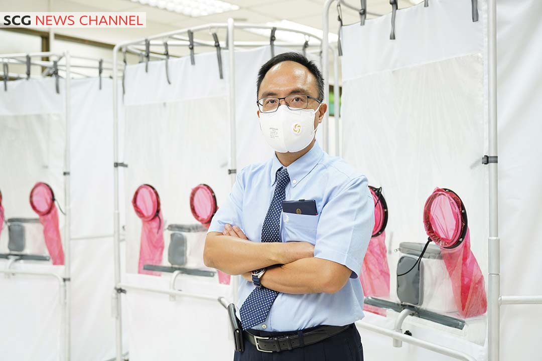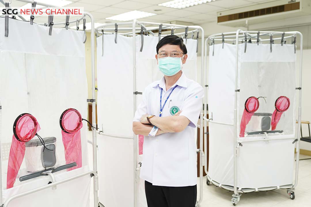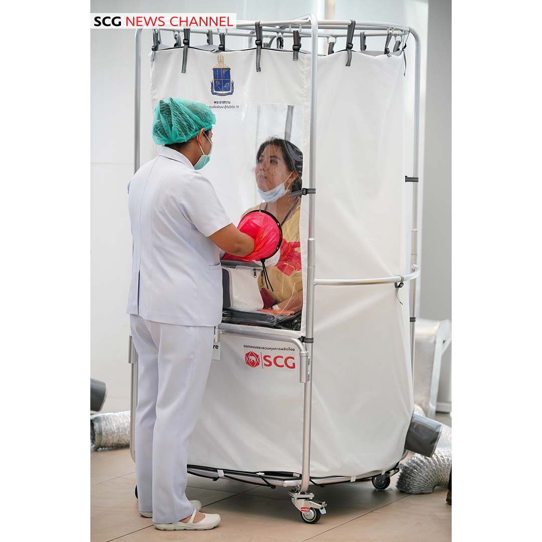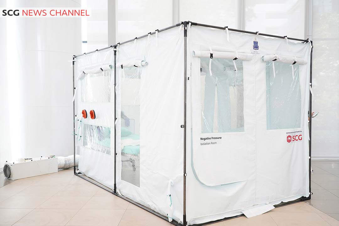 “ในโรงพยาบาลเราต้องแยกผู้ป่วยติดเชื้อออกจากผู้ป่วยปกติ และลดการปนเปื้อนและติดเชื้อของผู้ป่วยจากการแพร่กระจายเชื้อทางอากาศ (Airborne) ไปยังผู้ป่วยอื่น ๆ นวัตกรรมที่เป็นเกราะป้องกันสำคัญสำหรับพื้นที่อันตราย (Red Zone) คือ ห้องแยกป้องกันเชื้อความดันลบแบบเคลื่อนที่ ที่มีลักษณะเหมือนเต็นท์ เหมาะกับการใช้ในห้องฉุกเฉินหรือไอซียู โดยปกติจะมีคนไข้ราว 5% ที่ป่วยหนักจนต้องเข้าไอซียู การสร้างห้องควบคุมความดันลบเพื่อควบคุมการแพร่กระจายของเชื้อในเวลาอันรวดเร็วเพื่อรองรับผู้ป่วยหนัก ถือเป็น Mission Impossible เพราะการสร้างห้องความดันลบห้องใหม่จะเสียเวลานานมาก แต่ห้องแยกป้องกันเชื้อความดันลบของเอสซีจี เป็น Mission Possible สามารถติดตั้งได้เองโดยบุคลากรทางการแพทย์ภายในเวลา 1 ชั่วโมง และสามารถปรับให้เป็นห้องความดันลบ (Negative Pressure) ได้ทันที