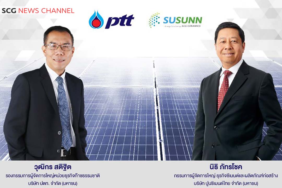 และติดตั้งระบบผลิตไฟฟ้าพลังงานแสงอาทิตย์ครบวงจรของ เอสซีจี เซรามิกส์ ภายใต้ แบรนด์ “SUSUNN” มาร่วมพัฒนาธุรกิจให้บริการระบบผลิตไฟฟ้าจากพลังงานแสงอาทิตย์ให้แก่ลูกค้าก๊าซธรรมชาติ กลุ่มโรงงานอุตสาหกรรมและผลิตไฟฟ้าใช้เองของ ปตท.