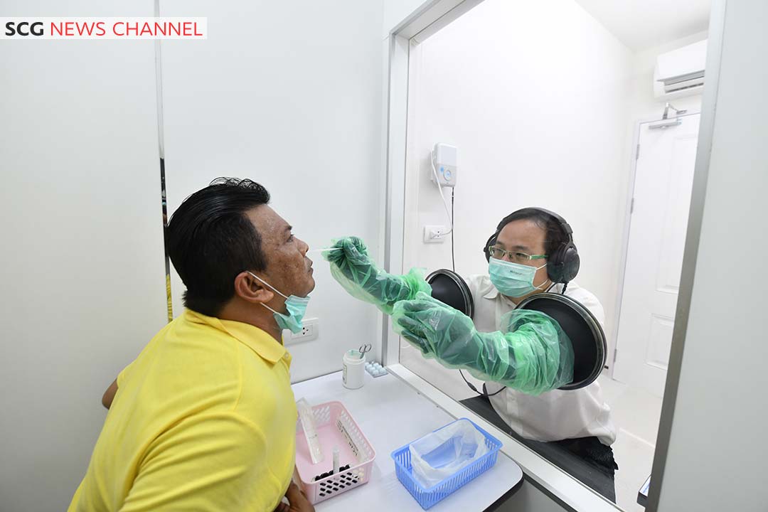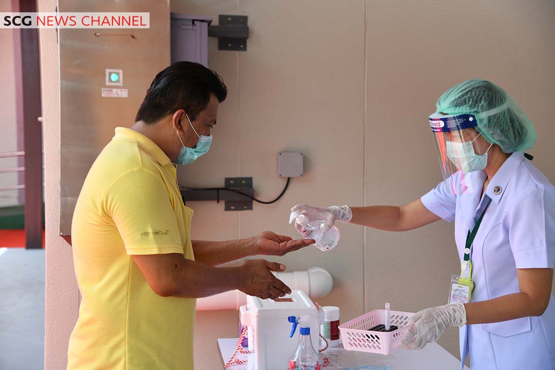 ขณะที่ นายแสงชัย วิริยะอำไพวงศ์ ประธานเจ้าหน้าที่ปฏิบัติการ ธุรกิจกระดาษบรรจุภัณฑ์ เอสซีจี แพคเกจจิ้ง กล่าวว่า “เอสซีจี รู้สึกปลาบปลื้มเป็นอย่างยิ่งที่ได้รับพระมหากรุณาธิคุณ ให้มีส่วนร่วมในการผลิตนวัตกรรมห้องตรวจหาเชื้อ (Modular Swab Unit) เพื่อช่วยปกป้องแพทย์ พยาบาล และบุคลากรทางการแพทย์ ขณะปฏิบัติหน้าที่ อันเป็นการตอบแทนความเสียสละและอุทิศตนของท่านทั้งหลายที่ได้ช่วยกันดูแลรักษาผู้ป่วย และยังช่วยปกป้องประชาชนจากการแพร่ระบาดของเชื้อไวรัสนี้ โดยห้องตรวจหาเชื้อดังกล่าว พัฒนาจากเทคโนโลยีของ SCG HEIM และ Living Solution ซึ่งได้ออกแบบให้มีระบบที่จะช่วยควบคุมแรงดันและการหมุนเวียนของอากาศให้สะอาด ปลอดภัย มีระบบการป้องกันอากาศรั่วไหล ที่ทำให้ห้องปิดสนิท ป้องกันอากาศเข้า-ออกตัวอาคาร ทำให้ภายในอาคารสามารถควบคุมแรงดันอากาศได้เป็นอย่างดี ช่วยเพิ่มความมั่นใจในความปลอดภัยแก่บุคลากรทางการแพทย์ ขณะปฏิบัติหน้าที่ได้มากขึ้น สำหรับห้องตรวจหาเชื้อที่โรงพยาบาลราชบุรี ได้ติดตั้งในบริเวณหน้าคลินิกแสงตะวัน เพื่อให้ขั้นตอนการตรวจคัดกรองผู้ป่วยและการตรวจหาเชื้อดำเนินไปอย่างราบรื่น แม้ว่าพื้นที่ติดตั้งจะมีข้อจำกัด เนื่องจากเป็นพื้นที่แคบ แต่ด้วยความร่วมมืออย่างดียิ่งของทางโรงพยาบาล ประกอบกับประสบการณ์และความชำนาญของทีมติดตั้ง จึงทำให้การดำเนินการต่าง ๆ สำเร็จลงภายในเวลาเพียง 3 วัน พร้อมที่จะให้บริการแก่บุคลากรทางการแพทย์และประชาชนได้ในทันที”
