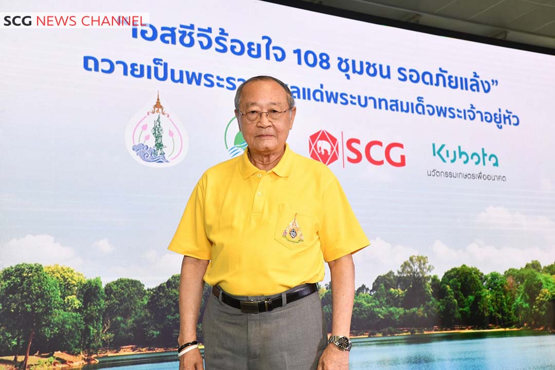 องคมนตรี ศาสตราจารย์เกียรติคุณ นายแพทย์ เกษม วัฒนชัย ในฐานะประธานคณะกรรมการการพัฒนาอย่างยั่งยืน เอสซีจี กล่าวว่า จากการที่เอสซีจีได้ทำงานร่วมกับมูลนิธิอุทกพัฒน์ ในพระบรมราชูปถัมภ์ และสถาบันสารสนเทศทรัพยากรน้ำ (องค์การมหาชน) (สสน.) มาตั้งแต่ปี 2558 ในการสนับสนุนชุมชนที่ประสบภัยแล้งซ้ำซากให้บริหารจัดการน้ำตามแนวพระราชดำริ ด้วยการพึ่งพาตนเอง ใน 9 พื้นที่ทั่วประเทศ ช่วยให้มีน้ำสำรองกว่า 16 ล้าน ลบ.ม. ประชาชนกว่า 6,700 ครัวเรือน มีน้ำเพียงพอต่อการอุปโภค บริโภค และการเกษตร