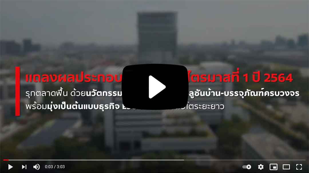 เอสซีจีเผยผลประกอบการไตรมาส 1 ปี 2564 กำไรเพิ่มขึ้น จากนวัตกรรมเคมีภัณฑ์ที่มีมูลค่าเพิ่มรับตลาดโลกฟื้น การเริ่มผลิตของโรงงานมาบตาพุดโอเลฟินส์ เฟส 2 และการส่งมอบโซลูชันที่อยู่อาศัย ตอบโจทย์ลูกค้าที่ต้องการปรับปรุงบ้านในช่วง Work from Home ขณะที่บรรจุภัณฑ์สำหรับอาหาร-เครื่องดื่ม และอีคอมเมิร์ซเติบโตต่อเนื่อง ควบคู่กับการใช้เทคโนโลยีบริหารจัดการกระบวนการผลิตให้มีประสิทธิภาพเพื่อลดต้นทุน พร้อมมุ่งขับเคลื่อนองค์กรสู่ต้นแบบธุรกิจ ESG ด้วยการลงนามในสัญญาซื้อหุ้นในบริษัทรีไซเคิลพลาสติก ในโปรตุเกส พัฒนาโซลูชัน Medical & Healthcare และ EV รับเทรนด์โลก เพื่อสร้างการเติบโตระยะยาว