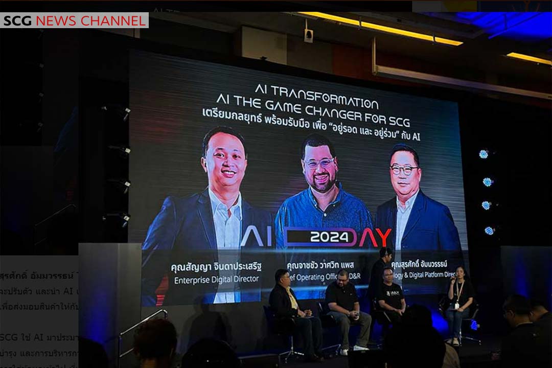 เมื่อเร็ว ๆ นี้ The Story Thailand ได้มีโอกาสไปสังเกตการณ์ การเตรียมความพร้อมให้พนักงานของ SCG ผ่านกิจกรรม AI Day: Game Changer of the Decade ที่จัดที่สนักงานใหญ่ ที่มีคน SCG เข้าร่วม 1,000 คนทั้งออนไลน์และออฟไลน์ ภายในงานมีสัมมนาเต็มวัน และมีผลงานด้าน AI ของหน่วยงานต่าง ๆ ของ SCG มาจัดแสดงให้กับพนักงานด้วยกันได้สัมผัส และรับรู้ถึงความก้าวหน้า และทันต่อยุคสมัยขององค์กร