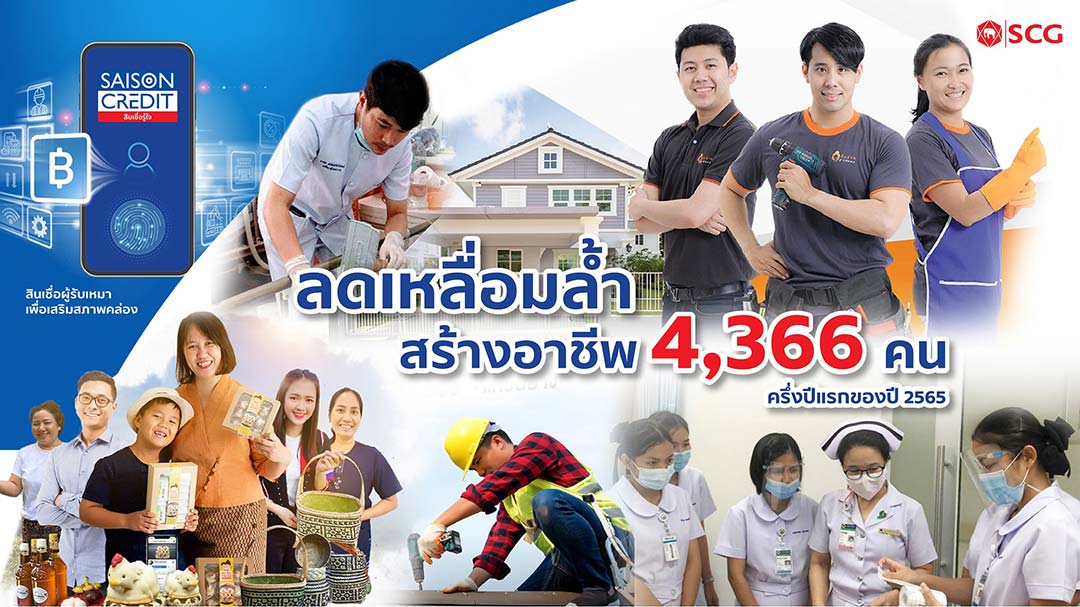เอสซีจี มุ่งลดความเหลื่อมล้ำให้แก่ผู้ที่ได้รับผลกระทบจากวิกฤติเศรษฐกิจ โดยมีผู้เข้าร่วมในครึ่งปีแรกของปี 2565 จำนวน 4,366 คน ครอบคลุมใน 3 มิติ ประกอบด้วย การฝึกอาชีพสร้างรายได้ยั่งยืน เช่น เสริมทักษะให้ความรู้เพิ่มมูลค่าสินค้าชุมชน ฝึกอาชีพคนพิการ ฝึกทักษะช่างปรับปรุงที่อยู่อาศัย ฝึกอาชีพที่ตลาดต้องการแก่เยาวชน การยกระดับทักษะฝีมือเพื่อความมั่นคงทางอาชีพ เช่น ผู้รับเหมาก่อสร้าง และการขยายโอกาสในการทำงาน เช่น ให้สินเชื่อผู้รับเหมาเพื่อเสริมสภาพคล่องซื้อวัสดุก่อสร้าง โดยบริษัท สยาม เซย์ซอน