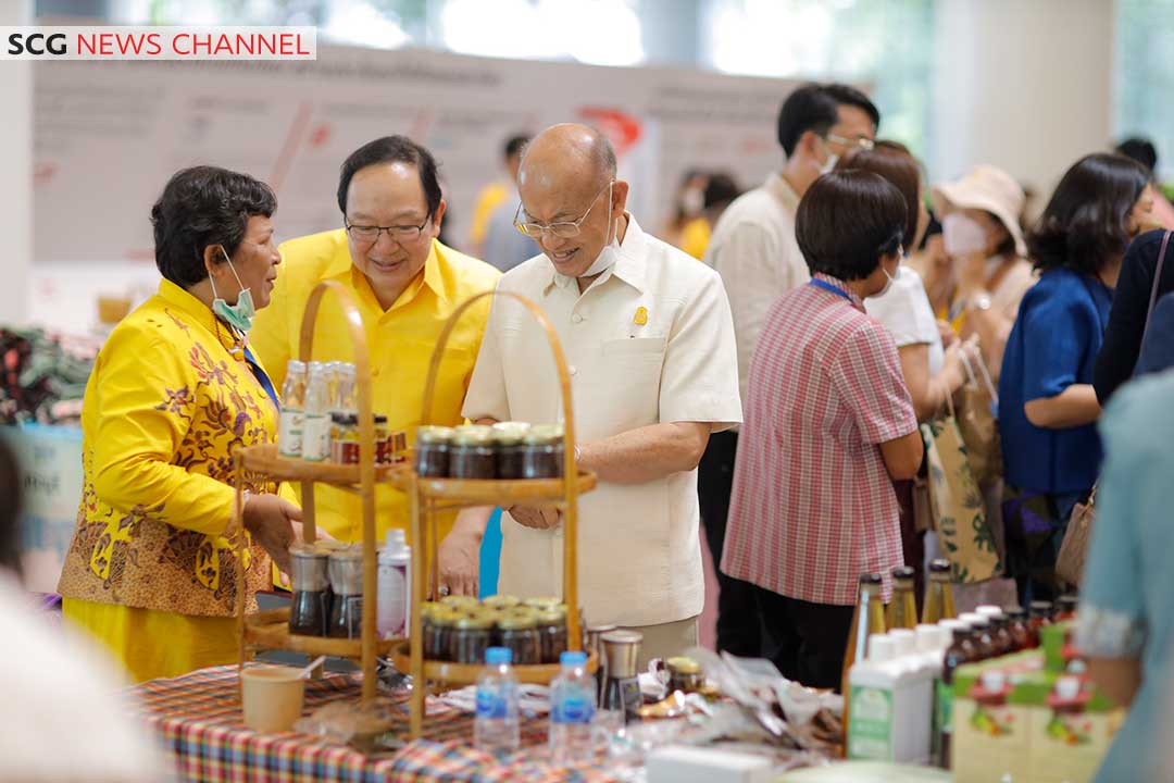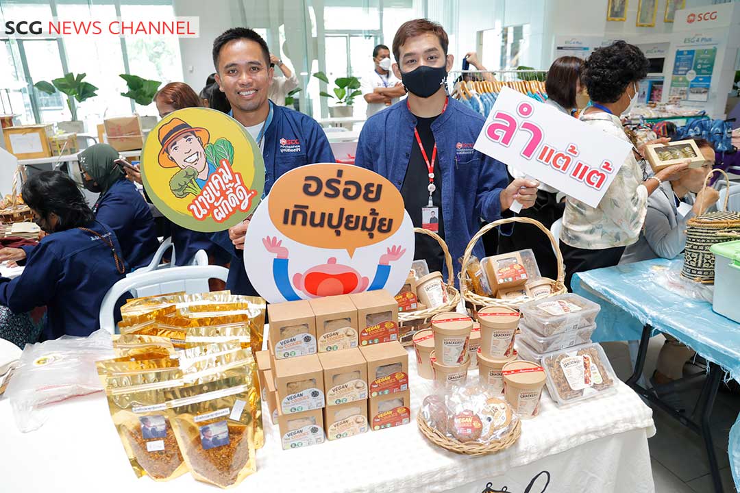 เอสซีจีได้จัดงาน “พลังชุมชน คนบันดาลใจ” โดยเชิญ 4 ชุมชนต้นแบบจากโครงการพลังชุมชนมาร่วมเสวนาเพื่อแรงบันดาลใจให้ชุมชนอื่น ๆ นำไปปรับใช้ในการดำเนินชีวิต ได้แก่ คุณเกศรินทร์ กลิ่นฟุ้ง จ.ลำปาง คุณแม่เลี้ยงเดี่ยว ที่แปรรูปขนมคุกกี้ไส้สับปะรดให้เป็นรูปไก่ซึ่งเป็นอัตลักษณ์ของจังหวัดลำปาง พร้อมปรับมาตรฐานสินค้าให้ได้รับ อย. จนได้การรับเลือกเป็นเมนูให้ผู้นำในเวทีประชุม APEC Thailand คุณยศวัจน์ ผาติพนมรัตน์ จ.อุดรธานี แม้จะตกงาน มีหนี้หลักล้าน แต่ก็ไม่ท้อ นำปลามาแปรรูปเป็นปลาส้ม จำหน่ายผ่านช่องทางออนไลน์และออฟไลน์ คุณมัจฉา สุดเต้ จ.อุบลราชธานี แม้จะตกงานจากสถานการณ์โควิด 19 แต่ก็ฮึดสู้ พัฒนาก๋วยจั๊บอุบล ซึ่งเป็นอาหารพื้นถิ่นให้มี 20 รสชาติ ผ่านมาตรฐาน อย. จนสามารถรับจ้างผลิตให้ร้านค้าอื่นๆ คุณอำพร วงค์ษา จ.ลำพูน เจอวิกฤต ด้านราคาลำไยตกต่ำ จึงหันมาแปรรูปเป็นก๋วยเตี๋ยวน้ำลำไย แบรนด์ ไร่วงษ์ษา ควบคู่ไปกับทำงานหัตกรรมงานผ้าปัก ดอกไม้ประดิษฐ์ ซึ่งพัฒนาเป็นศูนย์หัตถกรรมบ้านงานฝีมือบ้านผาหนาม จ.ลำพูน นอกจากนี้ ยังมีชุมชนที่เข้าร่วมโครงการพลังชุมชนจาก 14 จังหวัด นำผลิตภัณฑ์ที่แปรรูปสร้างมูลค่าเพิ่มมาจำหน่ายใน “ตลาดนัดพลังชุมชน คนบันดาลใจ” ณ เอสซีจี สำนักงานใหญ่ บางซื่อ