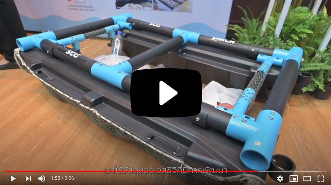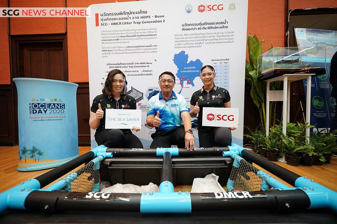 นายเจริญชัย ประเทืองสุขศรี กรรมการผู้จัดการ บริษัท ระยองวิศวกรรมและซ่อมบำรุง จำกัด ในธุรกิจเคมิคอลส์ เอสซีจี กล่าวว่า “ธุรกิจเคมิคอลส์ เอสซีจี ได้ร่วมกับภาคีเครือข่ายขับเคลื่อนการฟื้นฟูทรัพยากรทางทะเลและชายฝั่งมาอย่างต่อเนื่อง อาทิ การเก็บขยะชายหาด ปล่อยพันธุ์สัตว์น้ำ และปลูกป่าชายเลน  โดยปีที่ผ่านมา เอสซีจีได้ร่วมกับกรมทรัพยากรทางทะเลและชายฝั่ง (ทช.) กระทรวงทรัพยากรธรรมชาติและสิ่งแวดล้อม พัฒนาต้นแบบทุ่นกักขยะลอยน้ำ เพื่อลดปัญหาขยะทะเลด้วยนวัตกรรม ส่งเสริมให้ระบบนิเวศทางทะเลมีความสมบูรณ์อย่างยั่งยืน โดยได้ติดตั้งทุ่นดังกล่าวบริเวณปากแม่น้ำและลำคลองสาขาที่เชื่อมต่อกับทะเลกว่า 24 ชุด ในพี้นที่ 13 จังหวัด เพื่อป้องกันขยะจากแม่น้ำไหลลงสู่ทะเล ผลปรากฏว่าสามารถช่วยกักขยะได้กว่า 40 ตัน  ซึ่งในปีนี้  ธุรกิจเคมิคอลส์ เอสซีจี ยังคงเดินหน้าพัฒนาทุ่นกักขยะลอยน้ำอย่างต่อเนื่อง โดยนำความเชี่ยวชาญและเทคโนโลยีด้านวัสดุพอลิเมอร์ ผสมผสานกับความสามารถด้านการออกแบบเชิงวิศวกรรมมาพัฒนา นวัตกรรมทุ่นกักขยะลอยน้ำ จาก HDPEBone หรือ  SCGDMCR Litter Trap Generation 2 ด้วยการนำ HDPE-Bone ซึ่งผลิตจากพลาสติกเกรดพิเศษ HDPE มาใช้ทดแทนวัสดุเดิม ทำให้ทุ่นฯ สามารถลอยน้ำได้ดีขึ้น จัดเก็บขยะลอยน้ำได้มีประสิทธิภาพมากขึ้นกว่าเดิม ทนทานต่อรังสียูวี อายุการใช้งานยาวนาน  และสามารถนำกลับมารีไซเคิลตามหลักเศรษฐกิจหมุนเวียนได้อีกด้วย  และในวันทะเลโลกประจำปี 2563 นี้ เอสซีจีจึงได้ส่งมอบ “นวัตกรรมทุ่นกักขยะลอยน้ำ จาก HDPE-Bone” หรือ  SCG-DMCR Litter Trap Generation 2  ให้กับ 7 จังหวัดชายฝั่งทะเล ได้แก่ ระยอง  สมุทรปราการ เพชรบุรี สุราษฎร์ธานี สงขลา พังงา และกระบี่ เพื่อป้องกันขยะไหลสู่ทะเล”
