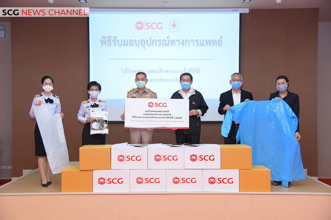 ธุรกิจเคมิคอลส์ เอสซีจี โดย นายเจริญชัย ประเทืองสุขศรี กรรมการผู้จัดการ บริษัท ระยองวิศวกรรมและซ่อมบำรุง จำกัด มอบ “อุปกรณ์ทางการแพทย์” เพื่อป้องกันและลดความเสี่ยงในการติดเชื้อโควิด-19 ให้กับแพทย์และบุคลากรทางการแพทย์ ประกอบด้วยชุด PPE ทางการแพทย์ หน้ากาก N95 และหน้ากาก Face Shield จำนวนรวมกว่า 14,000 ชิ้น แก่โรงพยาบาล 9 แห่งใน จ.ระยอง และโรงพยาบาลสมเด็จพระนางเจ้าสิริกิติ์ จ.ชลบุรี โดยมี นายสุรศักดิ์ เจริญศิริโชติ ผู้ว่าราชการจังหวัดระยอง และ พลเรือตรี นายแพทย์เกิดศักดิ์ วีระโยธิน ผู้อำนวยการโรงพยาบาลสมเด็จพระนางเจ้าสิริกิติ์ เป็นผู้รับมอบ