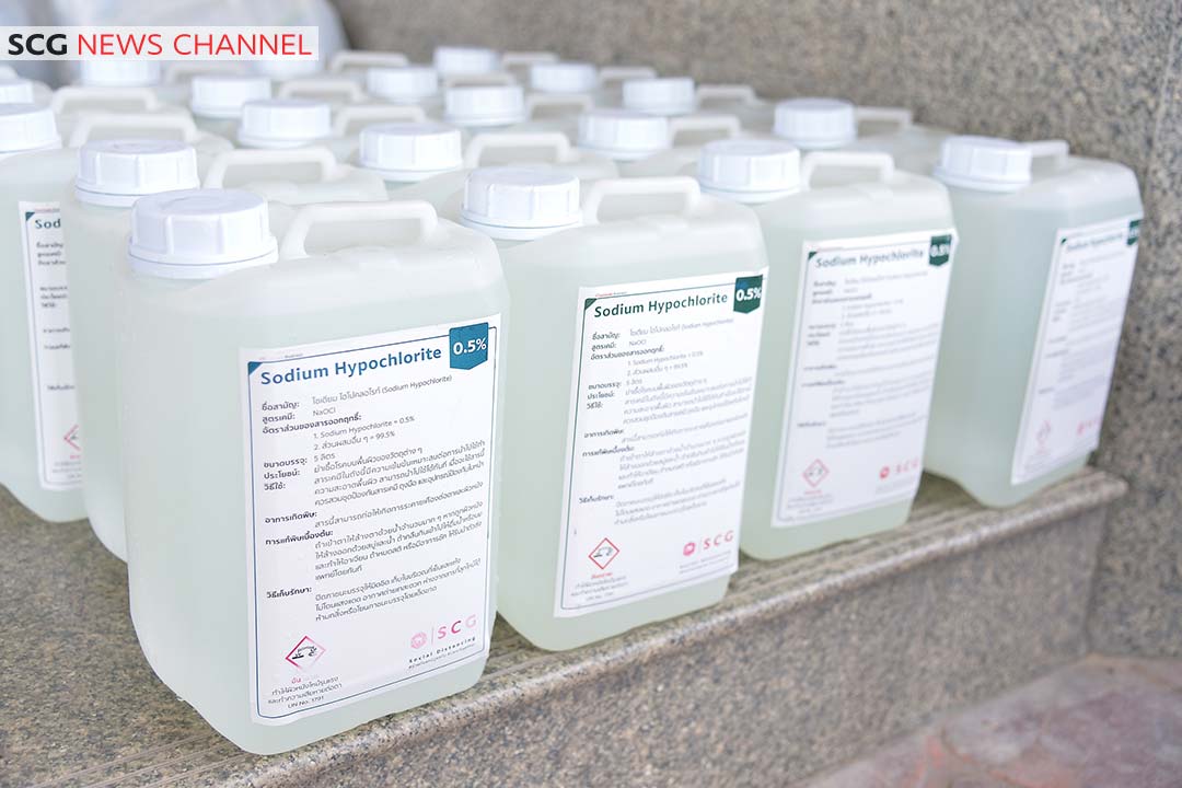 นายไพศาล เล็กสกุลชัย กรรมการผู้จัดการ บริษัทมาบตาพุดโอเลฟินส์ จำกัด ในธุรกิจเคมิคอลส์ เอสซีจี กล่าวว่า “น้ำยาฆ่าเชื้อเป็นอีกสิ่งหนึ่งที่จำเป็นอย่างมากในขณะนี้ เนื่องจากเทศบาลต้องใช้ในการฉีดพ่นฆ่าเชื้อตามสถานที่สาธารณะต่าง ๆ เพื่อลดความเสี่ยงในการติดเชื้อให้กับชุมชน และยังเป็นการดูแลสุขอนามัยและความปลอดภัยให้กับคนในชุมชนอีกด้วย ดังนั้น บริษัท มาบตาพุดโอเลฟินส์ จำกัด จึงได้นำสาร Sodium Hypochlorite ที่มีอยู่ในโรงงานมาปรับค่าความเข้มข้นให้เหมาะกับการใช้งาน และนำมาบรรจุในแกลลอนสำหรับบรรจุสารเคมีซึ่งผลิตจากเม็ดพลาสติกคุณภาพสูง SMXTM by SCG ที่มีคุณสมบัติแข็งแรงเป็นพิเศษ สามารถทนต่อการกัดกร่อนของสารเคมีได้เป็นอย่างดี จึงมั่นใจในความปลอดภัยระหว่างการขนส่งและการจัดเก็บน้ำยาฆ่าเชื้อ โดยส่งมอบน้ำยาฉีดพ่นฆ่าเชื้อ จำนวน 3,000 ลิตร บรรจุในแกลลอนพิเศษจำนวน 600 แกลลอนให้กับเทศบาล 3 แห่ง ได้แก่ เทศบาลเมืองมาบตาพุด เทศบาลตำบลมาบข่าพัฒนา และเทศบาลตำบลบ้านฉาง เพื่อนำไปใช้ทำความสะอาดฆ่าเชื้อในสถานที่สาธารณะต่อไป”