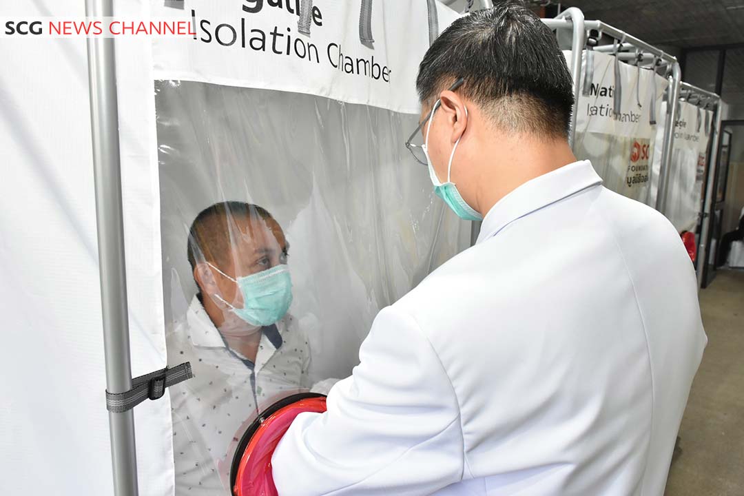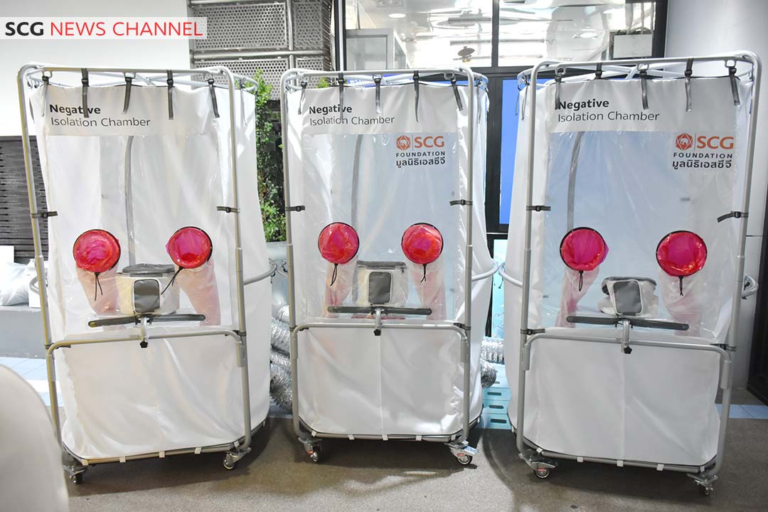 นางสาวสุวิมล จิวาลักษณ์ (ที่ 2 จากซ้าย) กรรมการและผู้จัดการมูลนิธิเอสซีจี ส่งมอบห้องตรวจเชื้อความดันลบแบบเคลื่อนที่ (Negative Pressure Isolation Chamber) ให้แก่โรงพยาบาลเจริญกรุงประชารักษ์ โดยมีนางศิลปสวย ระวีแสงสูรย์ (ที่ 3 จากซ้าย) ปลัดกรุงเทพมหานคร เป็นผู้รับมอบ เพื่อใช้สำหรับการตรวจวินิจฉัย (Swab) ผู้ที่เสี่ยงต่อการติดเชื้อโควิด-19 นับเป็นการเตรียมความพร้อมให้แก่บุคลากรทางการแพทย์อย่างต่อเนื่อง แม้ว่าประเทศไทยจะเข้าสู่การผ่อนปรนมาตรการแล้ว โดยนวัตกรรมดังกล่าว มีการควบคุมความดันอากาศที่มีประสิทธิภาพ เเละระบบกรองอากาศระดับ HEPA ที่ช่วยกรองอากาศให้สะอาด ปลอดภัย อีกทั้งยังสะดวกในการใช้งานอย่างมาก เพราะสามารถติดตั้งและเคลื่อนย้ายได้สะดวก เนื่องจากโครงสร้างทุกชิ้นแข็งแรง และใช้พลาสติกที่มีคุณภาพสูงเป็นส่วนประกอบหลัก