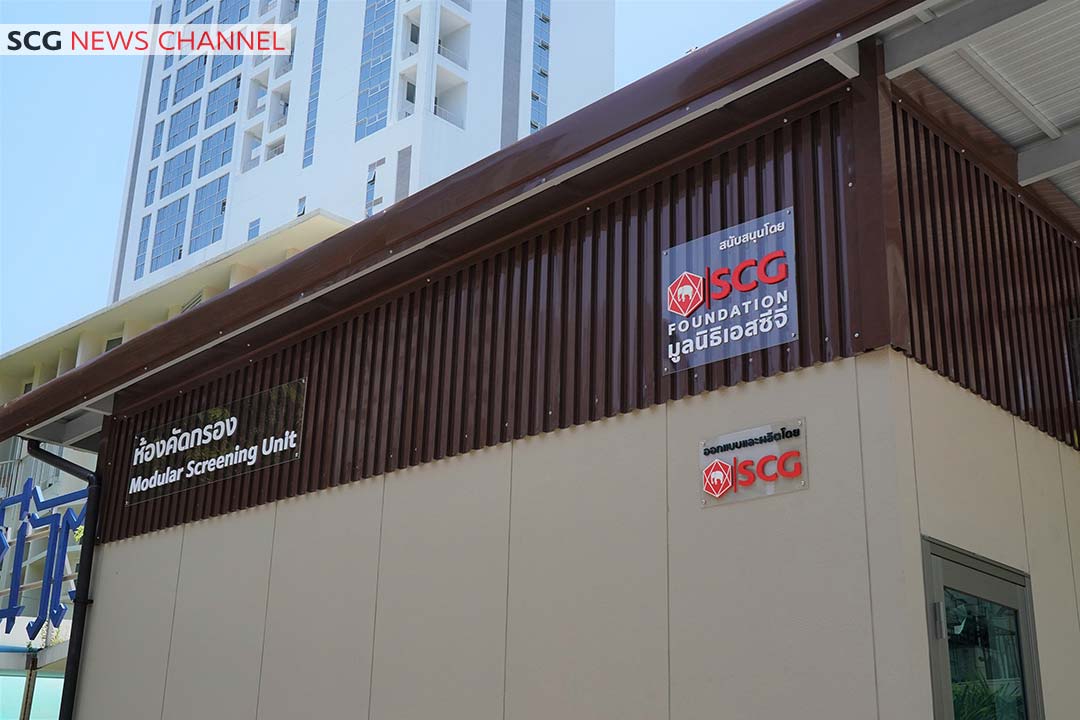 นายเชาวลิต เอกบุตร กรรมการบริหารมูลนิธิเอสซีจี พร้อมด้วย นายนิธิ ภัทรโชค กรรมการมูลนิธิเอสซีจี และกรรมการผู้จัดการใหญ่ ธุรกิจซีเมนต์และผลิตภัณฑ์ก่อสร้าง เอสซีจี ร่วมส่งมอบนวัตกรรมห้องคัดกรอง (Modular Screening Unit) จำนวน 1 ยูนิต มูลค่า 1.4 ล้านบาท ให้แก่ โรงพยาบาลจุฬาลงกรณ์ สภากาชาดไทย โดยมี ผศ.พญ.ยุวรีย์ พิชิตโชค รองผู้อำนวยการฯ ฝ่ายยุทธศาสตร์องค์กรและทรัพยากรบุคคล และ รศ.นพ.ฉันชาย สิทธิพันธุ์ รองคณบดีฝ่ายวางแผนและพัฒนา คณะแพทยศาสตร์ จุฬาลงกรณ์มหาวิทยาลัย เป็นตัวแทนรับมอบ โดยนวัตกรรมดังกล่าว ถูกออกแบบให้แยกสัดส่วนพื้นที่ระหว่างบุคลากรทางการแพทย์และผู้ที่มีความเสี่ยงในการติดเชื้อ อีกทั้งภายในยังเป็นระบบความดันบวกและมีคุณภาพอากาศที่เหมาะสม จึงช่วยลดโอกาสการติดเชื้อให้กับบุคลากรทางการแพทย์ได้เป็นอย่างดี ซึ่งทางโรงพยาบาลจะนำไปปรับใช้เป็นจุดลงทะเบียนผู้ที่มีความเสี่ยงในการติดเชื้อ เพื่อพัฒนาการดำเนินงานให้ดียิ่งขึ้นต่อไป