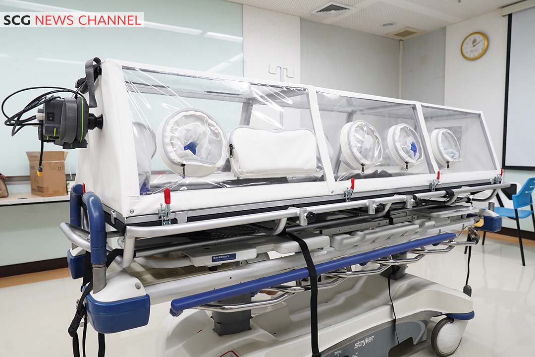 ทั้งนี้ นวัตกรรมป้องกันโควิด-19 แบบเคลื่อนที่ดังกล่าว ประกอบด้วย ห้องตรวจเชื้อความดันลบหรือบวกแบบเคลื่อนที่ (Negative/Positive Pressure Isolation Chamber) ช่วยให้แพทย์และพยาบาลสามารถสอดมือเข้าไปทำหัตถการ (Swab) โดยไม่ต้องสัมผัสโดยตรงกับผู้ป่วย แคปซูลเคลื่อนย้ายผู้ป่วยความดันลบ (Patient Isolation Capsule) ป้องกันการแพร่กระจายของเชื้อระหว่างการเคลื่อนย้ายผู้ป่วย แคปซูลเคลื่อนย้ายผู้ป่วยความดันลบขนาดเล็ก สำหรับเข้าเครื่อง CT Scan (Small Patient Isolation Capsule for CT scan) ป้องกันการแพร่กระจายของเชื้อระหว่างการเคลื่อนย้ายผู้ป่วยเข้าเครื่อง CT Scan และอุปกรณ์ครอบศีรษะคนไข้เพื่อป้องกันเชื้อสำหรับงานทันตกรรม (Dent Guard) ป้องกันการฟุ้งกระจายของเชื้อระหว่างการทำงานทันตกรรม