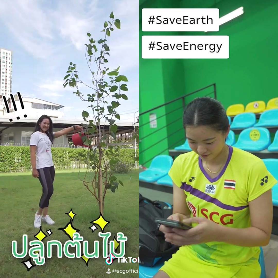 ‘เอสซีจี’ จึงชวน ‘โปรโม‘ โมรียา จุฑานุกาล และ ‘โปรเม‘ เอรียา จุฑานุกาล สองนักกอล์ฟสาวมือระดับท็อปของโลก ต่อยอดแคมเปญ “ลดโลกร้อนเริ่มที่เรา” เปิดพื้นที่ให้คนไทย ได้แชร์ไอเดียลดโลกร้อนอย่างอิสระ ด้วย “กิจกรรมชาเลนจ์ #ลดโลกร้อนเริ่มที่เรา” ผ่านแอปพลิเคชัน TikTok ที่กำลังได้รับความนิยม พร้อมด้วยทัพนักกีฬารุ่นใหม่ มาร่วมส่งต่อชาเลนจ์ในครั้งนี้ อย่างดาวรุ่ง “โปรเมียว” ปาจรีย์ อนันต์นฤการ “โปรจีน” อาฒยา ฐิติกุล รวมถึงนักตบลูกขนไก่ชื่อดัง ไม่ว่าจะเป็น คู่ผสมมือ 3 ของโลกอย่าง เดชาพล พัววรานุเคราะห์-ทรัพย์สิรี แต้รัตนชัย ”เอิร์ธ” พุธิตา สุภจิรกุล คู่ผสมดาวรุ่ง สุภัค จอมเกาะ-ศุภิสรา เพียวสามพราน และนักเตะชื่อดังของทีม “เอสซีจี เมืองทอง ยูไนเต็ด”