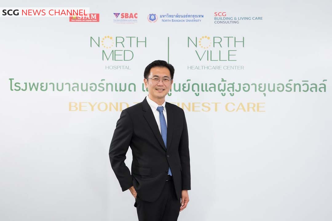 เอสซีจี โดยนายวชิระชัย คูนำวัฒนา Head of Smart System Solution Business (ขวาสุด) ร่วมแสดงความยินดีกับทีมผู้บริหาร “NorthMed Hospital and NorthVille Health Care Center” นำโดยผู้ช่วยศาสตราจารย์ ดร.สิทธิพร ประวัติรุ่งเรือง (ตำแหน่งที่ 3 จากซ้าย) อธิการบดี มหาวิทยาลัยนอร์ทกรุงเทพ และประธานกรรมการบริหาร โรงพยาบาล NorthMed และศูนย์ดูแลผู้สูงอายุ NorthVille ในโอกาสแถลงข่าวเปิดตัว โครงการโรงพยาบาลและศูนย์ดูแลผู้สูงอายุ ภายใต้แนวคิด Beyond The Finest Care ที่สุดความใส่ใจ มาตรฐานใหม่ของการดูแล เน้นบูรณาการการศึกษาสู่วิชาชีพการบริการสาธารณสุข การพยาบาลและการดูแลผู้สูงอายุ ที่จะสร้างประสบการณ์ใหม่ ของการดูแลรักษาและการใช้ชีวิตที่ให้อบอุ่นเหมือนอยู่ “บ้าน” พร้อมเปิดให้บริการกลางปี 2567 นี้