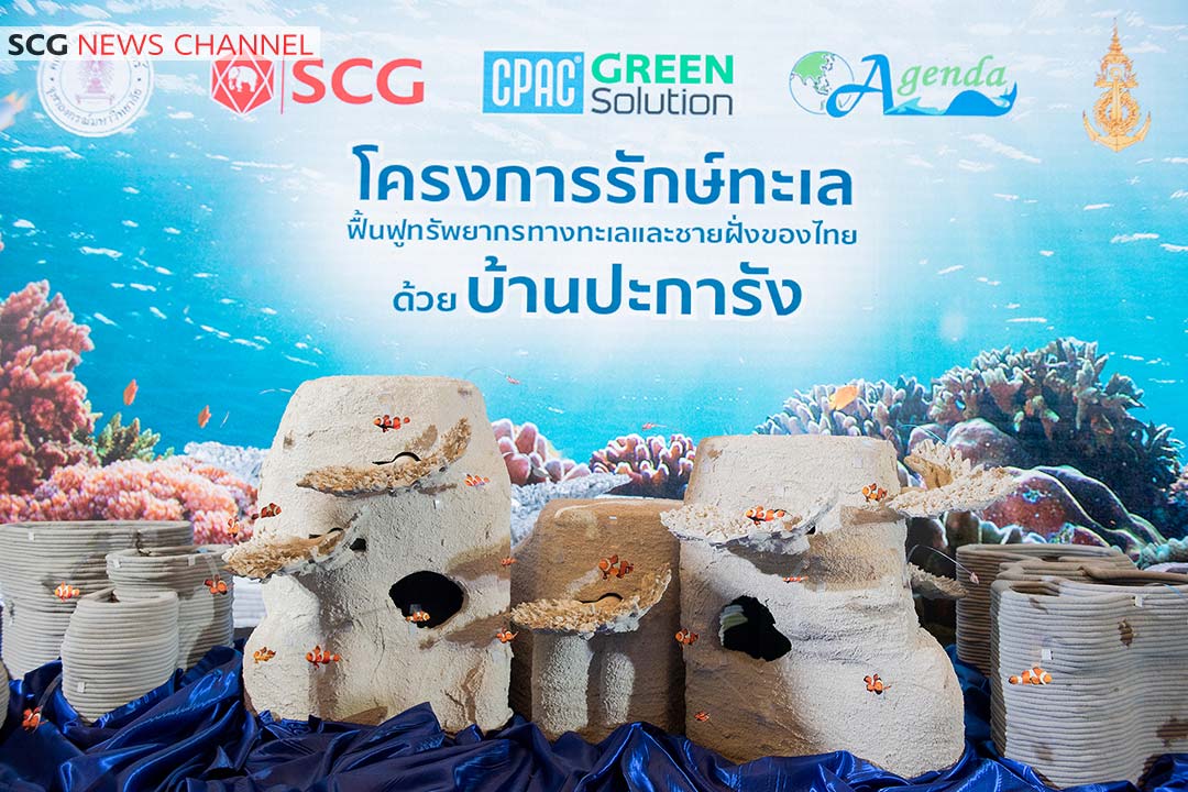 “เอสซีจี” โดย บริษัทผลิตภัณฑ์และวัตถุก่อสร้าง จำกัด ร่วมกับ กรมทรัพยากรทางทะเลและชายฝั่ง กระทรวงทรัพยากรธรรมชาติและสิ่งแวดล้อม คณะสัตวแพทยศาสตร์ จุฬาลงกรณ์มหาวิทยาลัย และมูลนิธิ Earth Agenda พร้อมภาคีสนับสนุน กองทัพเรือ มหาวิทยาลัยเทคโนโลยีพระจอมเกล้าพระนครเหนือ เปิดตัวโครงการ “รักษ์ทะเล” รวมพลังฟื้นฟูทรัพยากรทางทะเลด้วยบ้านปะการัง นำเทคโนโลยีการพิมพ์แบบ 3 มิติ จาก CPAC 3D Printing Solution ขึ้นรูปเป็นวัสดุฐานลงเกาะตัวอ่อนปะการัง สร้างต้นแบบนำร่องการฟื้นฟูทรัพยากรทางทะเล และชายฝั่งของประเทศ ที่มีรูปแบบใกล้เคียงธรรมชาติ พร้อมนำองค์ความรู้ ความเชี่ยวชาญจากพันธมิตร คืนกลับความอุดมสมบูรณ์ให้กับระบบนิเวศแนวปะการัง โดยเปิดรับสนับสนุนผ่านการระดมทุนผ่านมูลนิธิ Earth Agenda