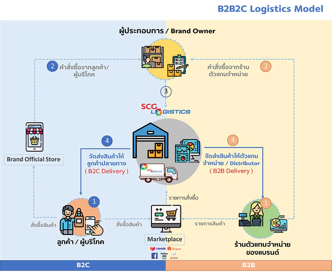 นายอุดร คงคาเขตร B2B2C Business Director บริษัท เอสซีจี โลจิสติกส์ แมเนจเม้นท์ จำกัด กล่าวว่า “จากการแข่งขันกันอย่างรุนแรงโดยเฉพาะในธุรกิจ Last-mile Delivery หลายค่ายต่างใช้กลยุทธ์ราคามาแข่งขันเพื่อช่วงชิงส่วนแบ่งตลาด ซึ่งคาดว่าในปี 2565 ธุรกิจ Last-mile Delivery จะมีมูลค่าตลาดกว่า 80,000 ล้านบาท เติบโตเพิ่มขึ้นจากปี 2564 อยู่ที่ประมาณ 14% แต่ผลกระทบที่ส่งถึงลูกค้า คือคุณภาพการให้บริการที่ต่ำลง เพราะต้นทุนที่ถูกบีบให้ใช้ได้อย่างจำกัด เอสซีจี โลจิสติกส์ ไม่ต้องการทำสงครามราคาเพื่อแย่งชิงลูกค้าในตลาด Red Ocean แต่เราจะเน้นไปที่คุณภาพของการให้บริการ และต้นทุนที่แข่งขันได้ โดยกลยุทธ์ของเรามุ่งไปที่ การเพิ่มขีดความสามารถในการแข่งขัน ให้กับลูกค้าและนำเสนอบริการที่แตกต่างจากคู่แข่ง ประกอบกับแนวโน้มของตลาดในช่วงนี้ พบว่าหลายแบรนด์เร่งขยายช่องทางการขายใหม่ ให้เข้าถึงลูกค้าให้ได้มากที่สุด เพื่อสร้างประสบการณ์ที่ดีตลอดทั้ง Customer Journey ตั้งแต่ต้นจนจบ รวมทั้งยังสามารถเก็บข้อมูลและหา Customer Insights ได้อีกด้วย ดังนั้นแบรนด์จึงหันมาให้ความสำคัญกับการพัฒนาแพลตฟอร์มออนไลน์ของตนเอง หรือที่เรียกว่า “Direct to Consumer” (D2C) คือการขายสินค้าแบบปลีก ผ่านช่องทางการขายเฉพาะที่เป็นของตนเอง มีบริการจัดส่ง และชำระเงินอย่างสมบูรณ์ไว้ในช่องทางเดียว โดยไม่ได้ขายผ่านแพลตฟอร์มออนไลน์อื่นๆ แต่กลยุทธ์นี้ก็ยังคงมีปัญหาอุปสรรคอีกมากมาย โดยเฉพาะเรื่องต้นทุนที่สูงในการพัฒนาระบบโลจิสติกส์ของตนเอง หรือแม้แต่ความชำนาญ ในการบริการจัดการด้านโลจิสติกส์ จากปัญหาดังกล่าว เอสซีจี โลจิสติกส์ จึงได้พัฒนา B2B2C Logistics Solution ขึ้นมา เพื่อจะเป็น B ตรงกลางที่จะเป็นพันธมิตรด้านโลจิสติกส์ ช่วยตอบโจทย์กลยุทธ์ในการขยายตลาดและส่งมอบความสำเร็จให้กับลูกค้า”