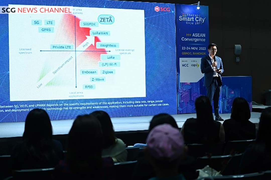 บริษัท เอสซีจี ซิเมนต์-ผลิตภัณฑ์ก่อสร้าง จํากัด นำโดย นายวชิระชัย คูนำวัฒนา Head of Smart System Solution Business จัดแสดงสินค้าและขึ้นเป็น Keynote Speaker ต่อเนื่องเป็นปีที่ 2 นำเสนอเทคโนโลยีเครือข่ายสัญญาณไร้สาย “ZETA” ภายใต้คอนเซ็ปต์ “Technology เพื่อ Smart City สู่ความเป็น Net Zero” มุ่งเป้าสนับสนุนให้ทุกอาคาร/อุตสาหกรรมไทยสู่การเป็นเมืองอัจฉริยะเต็มรูปแบบ ในงาน Thailand Smart City Expo 2023 ณ ฮอลล์ 3 – 4 ศูนย์การประชุมแห่งชาติสิริกิติ์ กรุงเทพฯ เมื่อวันที่ 23 พฤศจิกายน 2566 ที่ผ่านมา