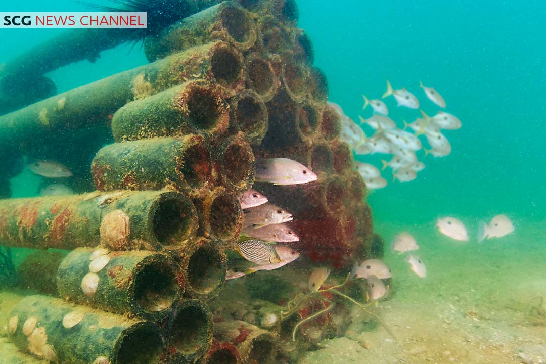 โครงการบ้านปลาเอสซีจี พื้นที่อนุรักษ์ทรัพยากรทางทะเลกว่า 47 ตารางกิโลเมตร ก่อให้เกิดความหลากหลายทางชีวภาพทางทะเลกว่า 172 ชนิด ด้วยโครงสร้างบ้านปลาที่ถูกคิดค้นออกแบบมาอย่างดี ประกอบกับการใช้ท่อ PE100 ที่ปลอดภัยและมีพื้นผิวเอื้อต่อการอาศัยของสัตว์น้ำทั้งเพรียงและหอย ส่งผลให้บ้านปลาถูกปกคลุมไปด้วยสัตว์น้ำมากมาย ปลาน้อยใหญ่เข้ามาใช้เป็นแหล่งพักอาศัยและหลบภัย การเพิ่มขึ้นของปริมาณสัตว์น้ำอย่างสมดุล ช่วยเพิ่มความสมบูรณ์ของทรัพยากรทะเลและชายฝั่ง สร้างสมดุลสู่ระบบนิเวศ และเป็นเสมือนคลังทรัพยากรในทะเลที่ชาวประมงสามารถทำมาหากินได้อย่างยั่งยืนชั่วลูกชั่วหลาน