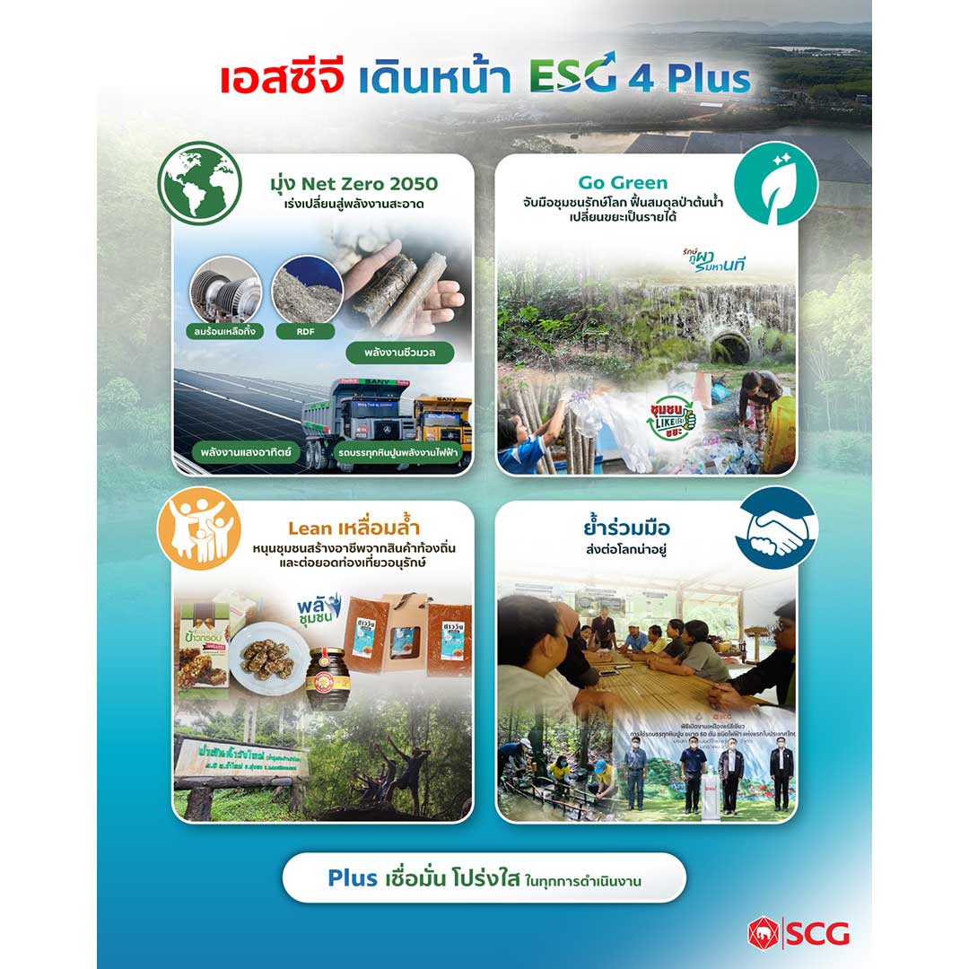 “เอสซีจี พร้อมเดินหน้า ESG 4 Plus ในทุกพื้นที่ที่เอสซีจีดำเนินงาน เร่งเปลี่ยนสู่พลังงานสะอาด พัฒนานวัตกรรมเป็นมิตรต่อสิ่งแวดล้อม ชวนชุมชนรักษ์โลก สร้างอาชีพด้วยความรู้คู่คุณธรรม ลดเหลื่อมล้ำ ขยายความร่วมมือในวงกว้าง เพื่อร่วมสร้างสังคมคาร์บอนต่ำยั่งยืน” นางวีนัส กล่าวสรุป