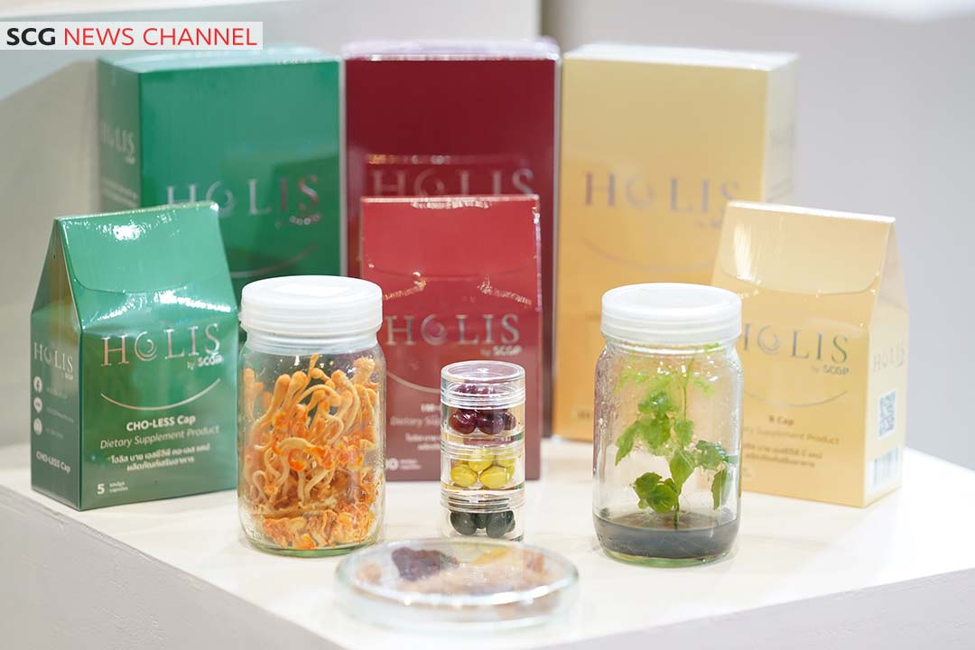 SCGP ได้นำองค์ความรู้และความเชี่ยวชาญ ด้านการปลูกพืชสมุนไพรมูลค่าสูงไม่ว่าจะเป็นถั่งเช่าสีทอง เห็ดเยื่อไผ่ และเจียวกู่หลาน มาพัฒนาเป็นผลิตภัณฑ์เสริมอาหารเพื่อการดูแลสุขภาพแบบองค์รวม แบรนด์ HOLIS by SCGP ตอบโจทย์การดูแลสุขภาพที่ดี จากภายในสำหรับทุกคนในครอบครัว ซึ่งได้รับความคุ้มครองทางด้านเครื่องหมายการค้า