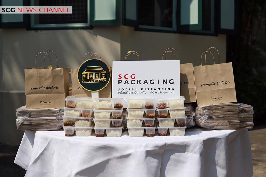 เอสซีจี แพคเกจจิ้ง มอบบรรจุภัณฑ์อาหารและถุงกระดาษ ซึ่งมีความสะอาดและปลอดภัย สำหรับบรรจุอาหารส่งมอบให้ถึงมือแพทย์และบุคลากรของโรงพยาบาลจุฬาลงกรณ์ สภากาชาดไทย โรงพยาบาลรามาธิบดี โรงพยาบาลศิริราช โรงพยาบาลรามาธิบดีจักรีนฤบดินทร์ บางพลี โรงพยาบาลสมุทรปราการ และโรงพยาบาลบ้านโป่ง จังหวัดราชบุรี เพื่อสนับสนุนการทำงานของทีมแพทย์และบุคลากรของโรงพยาบาลที่ต้องเผชิญกับการแพร่ระบาดของไวรัสโควิด-19 ทั้งนี้ ได้ร่วมมือกับผู้ประกอบการร้านอาหารชั้นนำ ได้แก่ ไชน่า พาเลซ (China Palace) สี่พระยา และไนน์ คาเฟ่ (Nine Cafe’) อ.บ้านโป่ง จ.ราชบุรี ที่ร่วมสนับสนุนอาหารคุณภาพในโครงการ“รวมพลังใจ สู้ภัยโควิด” นี้