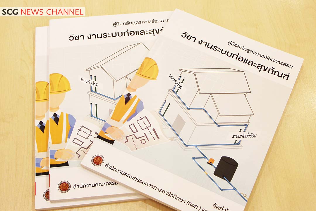 เอสซีจี นำโดย นายกฤต บุนนาค ผู้จัดการธุรกิจท่อและข้อต่อ บริษัทนวพลาสติกอุตสาหกรรม จำกัด (ลำดับที่ 3 จากขวา) ร่วมกับ สำนักงานคณะกรรมการการอาชีวศึกษา กระทรวงศึกษาธิการ (สอศ.) จัดทำคู่มือหลักสูตรการเรียนการสอน อาชีวศึกษา ภายใต้ชื่อ “งานระบบท่อและสุขภัณฑ์” และ “ระบบการให้น้ำและการจัดการ” จำนวนรวม 4,500 เล่ม ให้แก่วิทยาลัย สังกัดอาชีวศึกษา แผนกช่างก่อสร้างจำนวน 143 แห่ง และ วิทยาลัยเกษตรและเทคโนโลยี แผนกช่างกลเกษตร จำนวน 44 แห่ง ในทุกภูมิภาคทั่วประเทศ