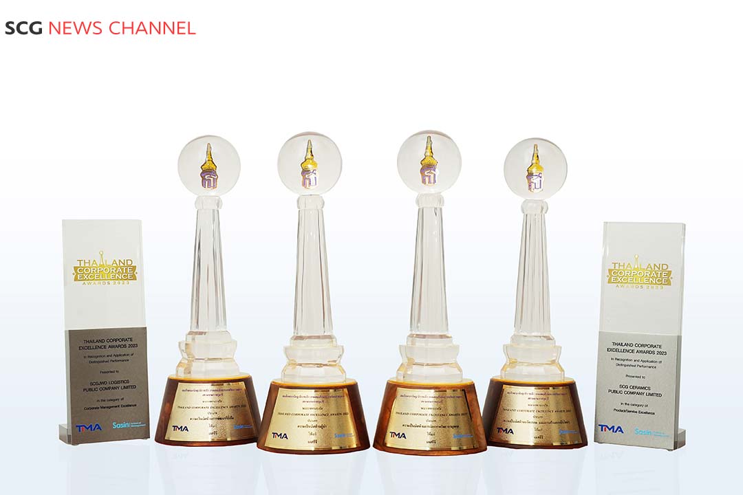 กรุงเทพฯ : 28 พฤศจิกายน 2566 – เอสซีจีรับ 6 รางวัล Thailand Corporate Excellence Awards 2023 ประกอบด้วย 4 รางวัลพระราชทานจากสมเด็จพระกนิษฐาธิราชเจ้า กรมสมเด็จพระเทพรัตนราชสุดาฯ สยามบรมราชกุมารี สาขาความเป็นเลิศด้านผู้นำ นวัตกรรมและการสร้างสรรค์สิ่งใหม่ ๆ การพัฒนาที่ยั่งยืน และการจัดการทรัพยากรบุคคล ต่อเนื่องเป็นปีที่ 21 พร้อม 2 รางวัลดีเด่น สาขาความเป็นเลิศด้านสินค้า-การบริการ โดยบริษัทเอสซีจี เซรามิกส์ จำกัด (มหาชน) และการบริหารจัดการโดยรวม โดยบริษัทเอสซีจี เจดับเบิ้ลยูดี โลจิสติกส์ จำกัด (มหาชน)