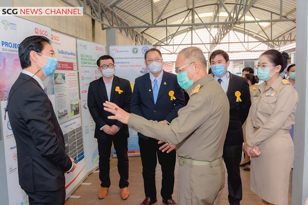 สำหรับโครงการ Ambulance Safety Solution เป็นการต่อยอดความสำเร็จจากโครงการ SCG Smart Logistics ซึ่งเป็นนวัตกรรมที่สามารถควบคุมความปลอดภัยบนท้องถนนตลอด 24 ชั่วโมง ด้วยการทำงานร่วมกับระบบปัญญาประดิษฐ์ในการตรวจจับพฤติกรรมความเสี่ยงของพนักงานขับรถในด้านความเร็ว การพักผ่อน และการจอดไหล่ทาง หรือพื้นที่เสี่ยงต่าง ๆ โดยการเชื่อมต่อสัญญาณ GPS กับรถขนส่ง และนำข้อมูลที่ได้มาวิเคราะห์และประมวลผลพฤติกรรมความเสี่ยงที่จะเกิดอุบัติเหตุ โดยระบบจะมีการแจ้งเตือนอัตโนมัติในรูปแบบเรียลไทม์ ทั้งการแจ้งเตือนก่อน (Alarm) และหลังกระทำความผิด (Alert) จากความสำเร็จในการบริหารจัดการกลุ่มรถขนส่งจึงได้ขยายการให้บริการไปยังกลุ่มรถพยาบาลฉุกเฉินโดยเพิ่มฟังก์ชันการแจ้งเตือนเมื่อรถพยาบาลฉุกเฉินเข้า-ออกก่อนถึงพื้นที่โรงพยาบาล 5 กิโลเมตร เพื่อให้ทีมแพทย์พยาบาลทราบสถานะรถพยาบาลฉุกเฉินสำหรับการเตรียมเครื่องมือทางการแพทย์และเตรียมความพร้อมในการรักษาผู้ป่วยทันท่วงที เพื่อลดอุบัติเหตุและการเสียชีวิตของประชาชนและบุคลากรทางการแพทย์ รวมถึงการขับขี่รถพยาบาลฉุกเฉินอย่างปลอดภัยตามที่กฎหมายกำหนด และการอบรมให้ความรู้กับพนักงานขับรถพยาบาลฉุกเฉินโดยโรงเรียนทักษะพิพัฒน์อย่างครบวงจร ด้วยความเชื่อมั่นในการทำงานร่วมกันระหว่างเทคโนโลยีและองค์ความรู้ที่จะเสริมสร้างศักยภาพการเรียนรู้อย่างยั่งยืนและมีประสิทธิภาพยิ่งขึ้น