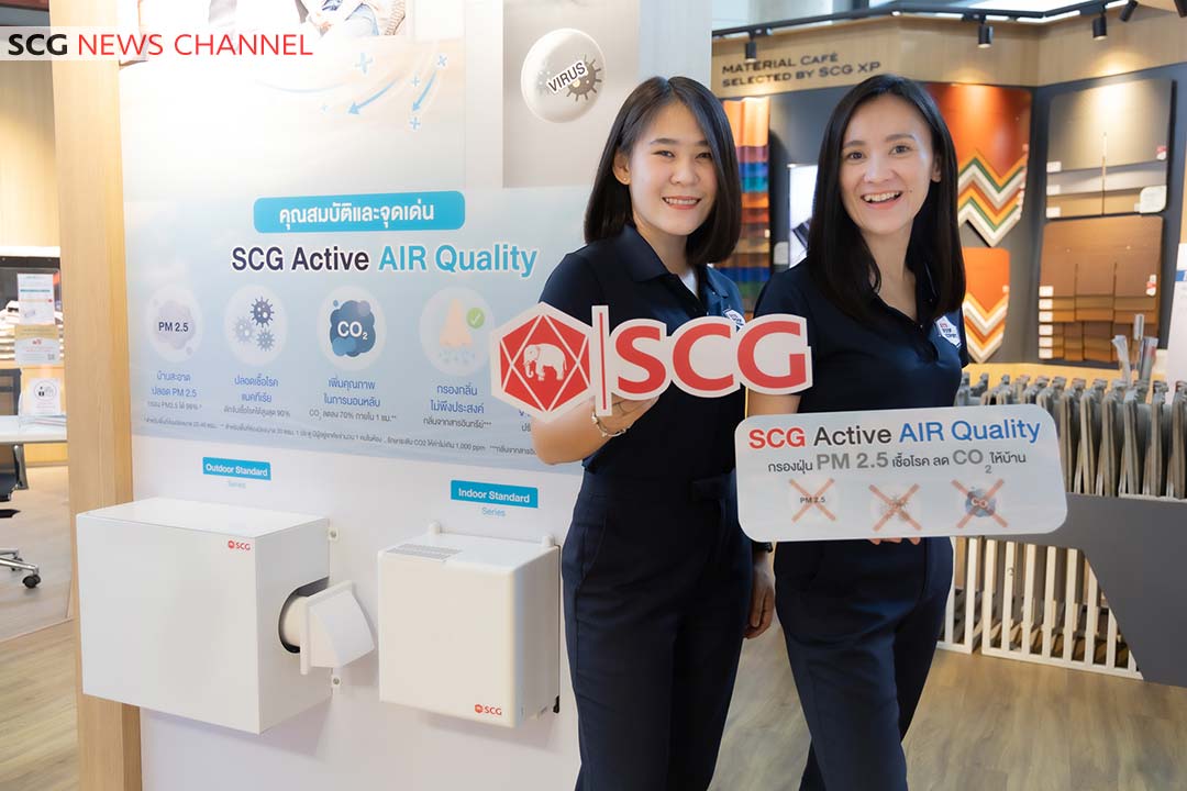 นอกจากนี้ ด้วยสถานการณ์ปัจจุบันที่บ้านจะต้องเผชิญปัญหา PM2.5 เชื้อโรค และมลภาวะทางอากาศหนักทุกปี การสร้างคุณภาพอากาศที่ดีและสภาวะอยู่สบายในบ้านก็มีความสำคัญมากเช่นกัน จึงพัฒนา Living Comfort Solutions เพื่อตอบโจทย์บ้านอยู่สบายสำหรับวิถีชีวิตปัจจุบัน ด้วยนวัตกรรม SCG Active AIRflow System ที่แก้ปัญหาบ้านร้อน อบอ้าว ให้เย็นลง 2-5 องศา รวมถึงนวัตกรรมใหม่ล่าสุด SCG Active AIR Quality ที่ช่วยสร้างอากาศสะอาดและปลอดภัย โดยการปรับอากาศให้มีคุณภาพดีตั้งแต่เข้าบ้าน สร้างอากาศในบ้านให้เป็น Positive Pressure พร้อมดันอากาศเสียออกนอกบ้าน และด้วยจุดเด่นที่สามารถกรองฝุ่น PM 2.5 ได้ 99%*, สามารถดักจับเชื้อโรค แบคทีเรีย ไวรัส รวมถึงกลุ่มไวรัสโคโรน่า ได้สูงสุด 99%* นอกจากนี้ยังเพิ่มปริมาณอ๊อกซิเจนเข้าสู่บ้าน เพื่อเพิ่มคุณภาพในการนอน อีกทั้งจะช่วยกรองกลิ่นไม่พึงประสงค์ภายนอกไม่ให้เข้าบ้าน และปรับความชื้นในบ้านให้สมดุล* จึงรู้สึกสบายตัวยิ่งขึ้น หมายเหตุ *คุณสมบัติของระบบเป็นไปตามเงื่อนไขที่บริษัทฯ กำหนด