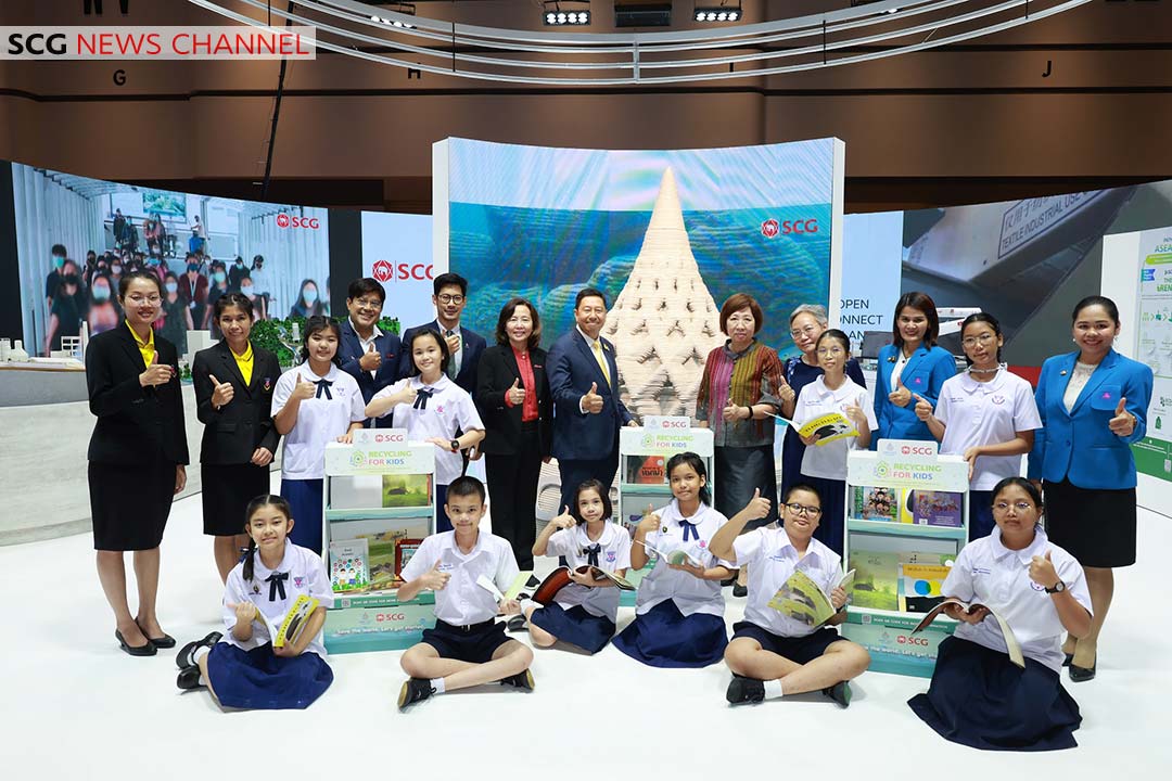 นอกจากนี้ เอสซีจี ร่วมกับ APEC 2022 Thailand ร่วมส่งมอบชั้นหนังสือรักษ์โลก ทำจากนวัตกรรมกระดาษรีไซเคิล ในโครงการ Recycling For Kids แก่ 15 โรงเรียนในเครือข่ายมูลนิธิยุวทูตความดีทั่วประเทศ พร้อมทั้งชุดหนังสือภาพนิทานเสริมทักษะสำหรับเด็กเล็ก โดยมูลนิธิเอสซีจี เพื่อส่งเสริมการศึกษา ลดความเหลื่อมล้ำในสังคม